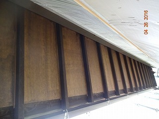 二階の霧除けも剥がれてしまっていましたが、同じように大工さんが修理して、塗装して終了しました。