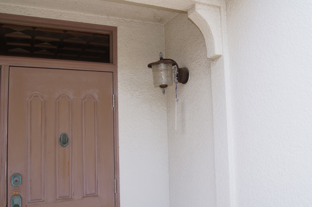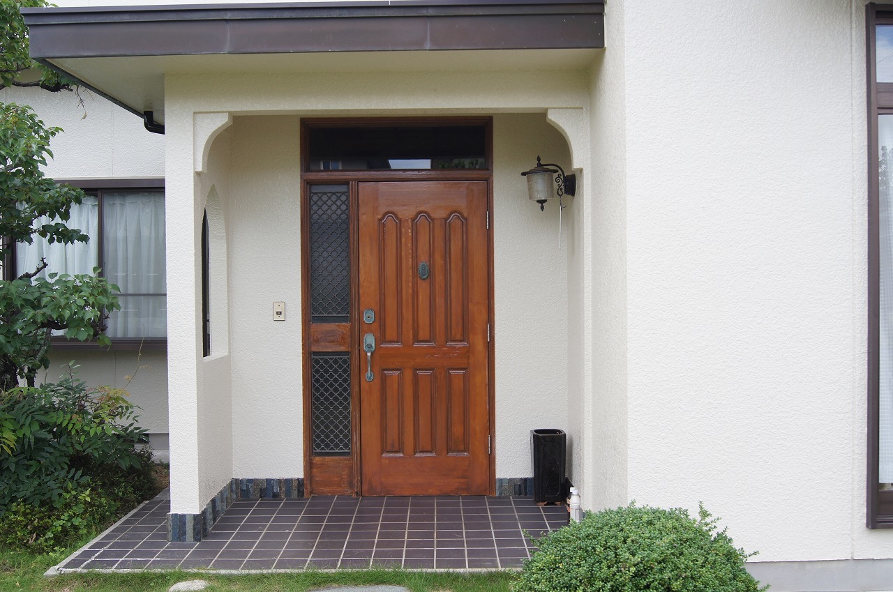 外壁塗装工事をご依頼いただきました。 新築の時は、クリアな塗装で仕上がっていた木製玄関扉が前回の塗り替えで着色されてしまい・・ 色褪せつつありました。 今回の塗り直しで、一旦すべての塗装を剥がし、もう一度クリアな塗装で仕上げ直しました。
