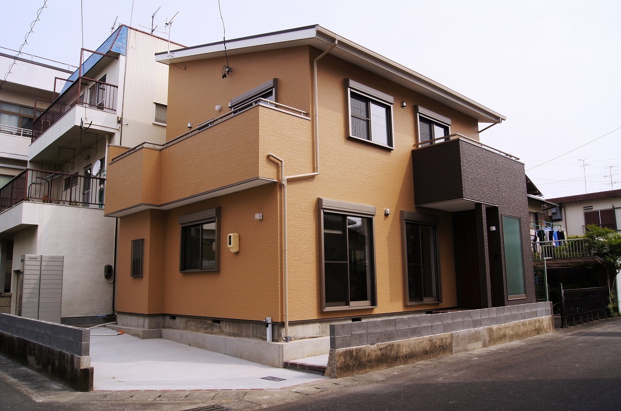 戸建ての中古住宅を購入いただき、全面改装+一部増築工事を行ないました。屋根形状も外壁仕様も完全リニューアル。使いにくく気になっていた駐車スペースから玄関アプローチへの高低差も暮らしやすいように工夫しました。