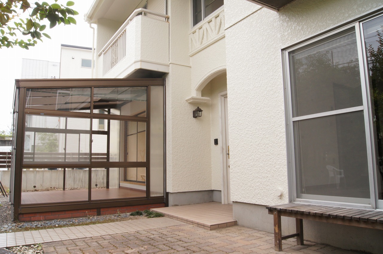 既存の換気扇や水道は塞ぎ、新たに壁側に配線、配管設置しました。