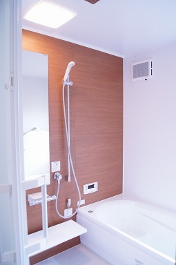 以前は東側にあった浴室ですが、北側に移動して新たにユニットバスを設置しました。浴槽も今までは入口左手にありましたが、今回は奥の壁に足を伸ばしても余裕の長さ。
