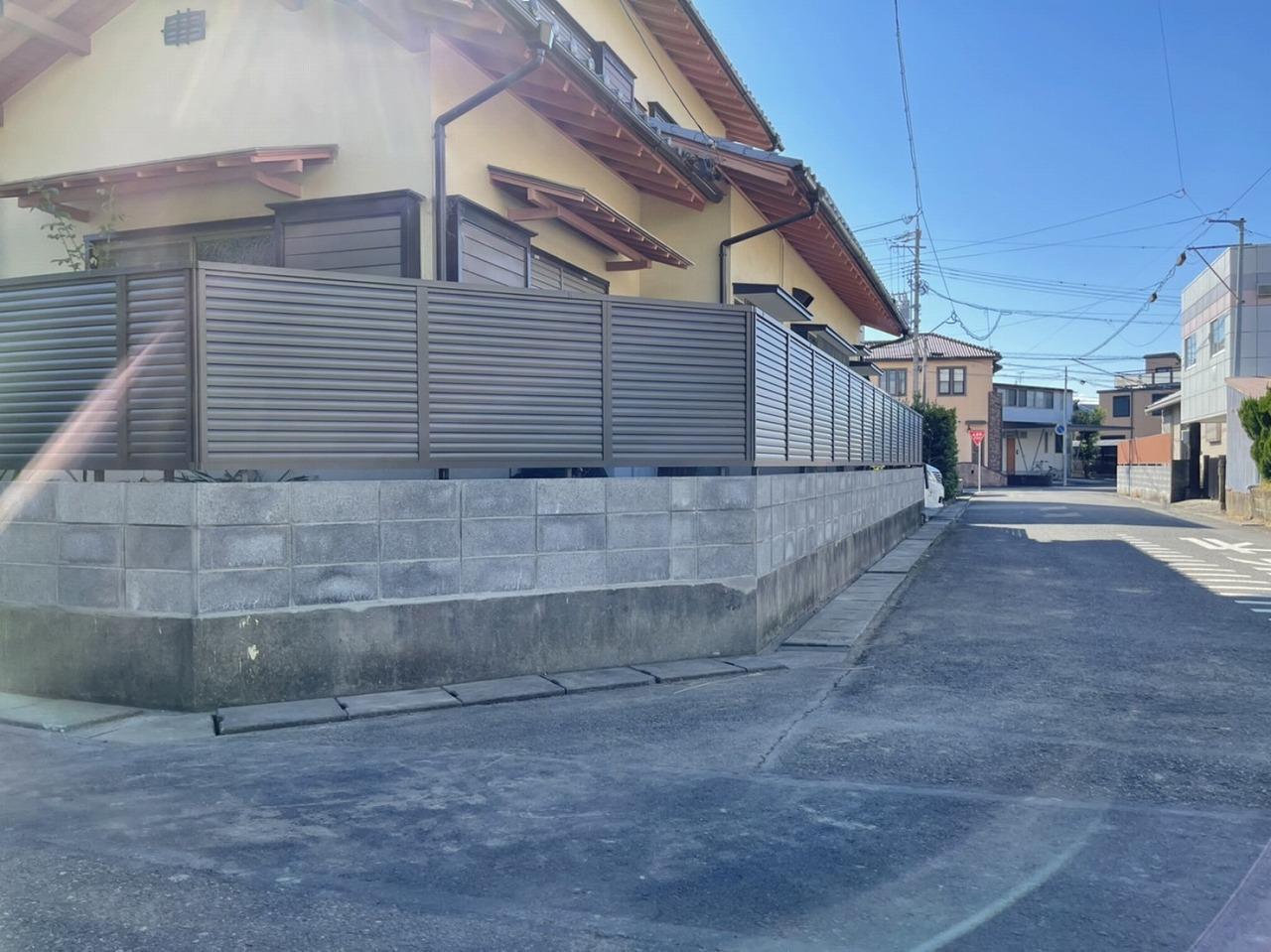 アルミフェンスにしたので、すっきりした外観になりました。敷地が広く感じます!プライバシーについては、生垣があったときは高さが190センチあり、同程度の高さにするためにブロック3段積みをご提案しました。強度の問題もあり、既存のブロックを解体してから現況に鉄筋を入れ、新しいコンクリートブロックに積みなおしました。