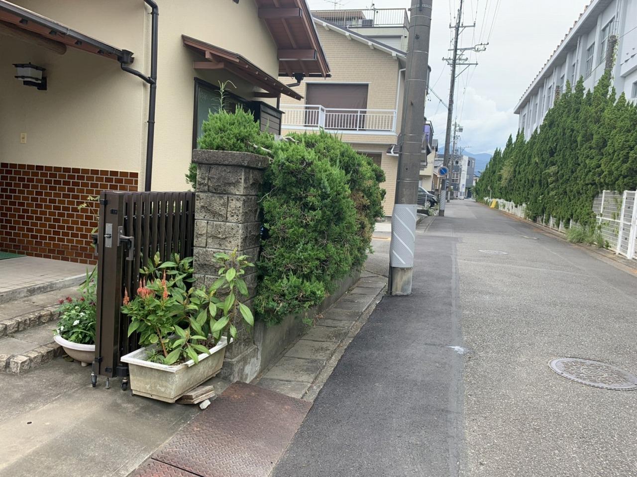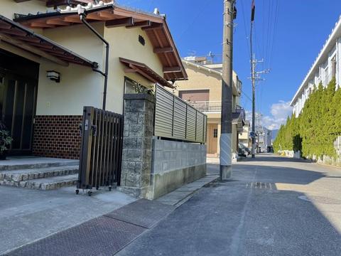 静岡市清水区、アルミフェンスの新設工事です。生垣を解体処分して、目隠しフェンスを新設しました。通風しながら、プライバシーを確保できるようリクシル フェンスAB YL3型(横ルーバー)を採用いただきました。生垣からフェンスにしたことで、道路側も家側もすっきりしました。フェンスをオータムブラウン色にしたので、和風な外観ともマッチしています。