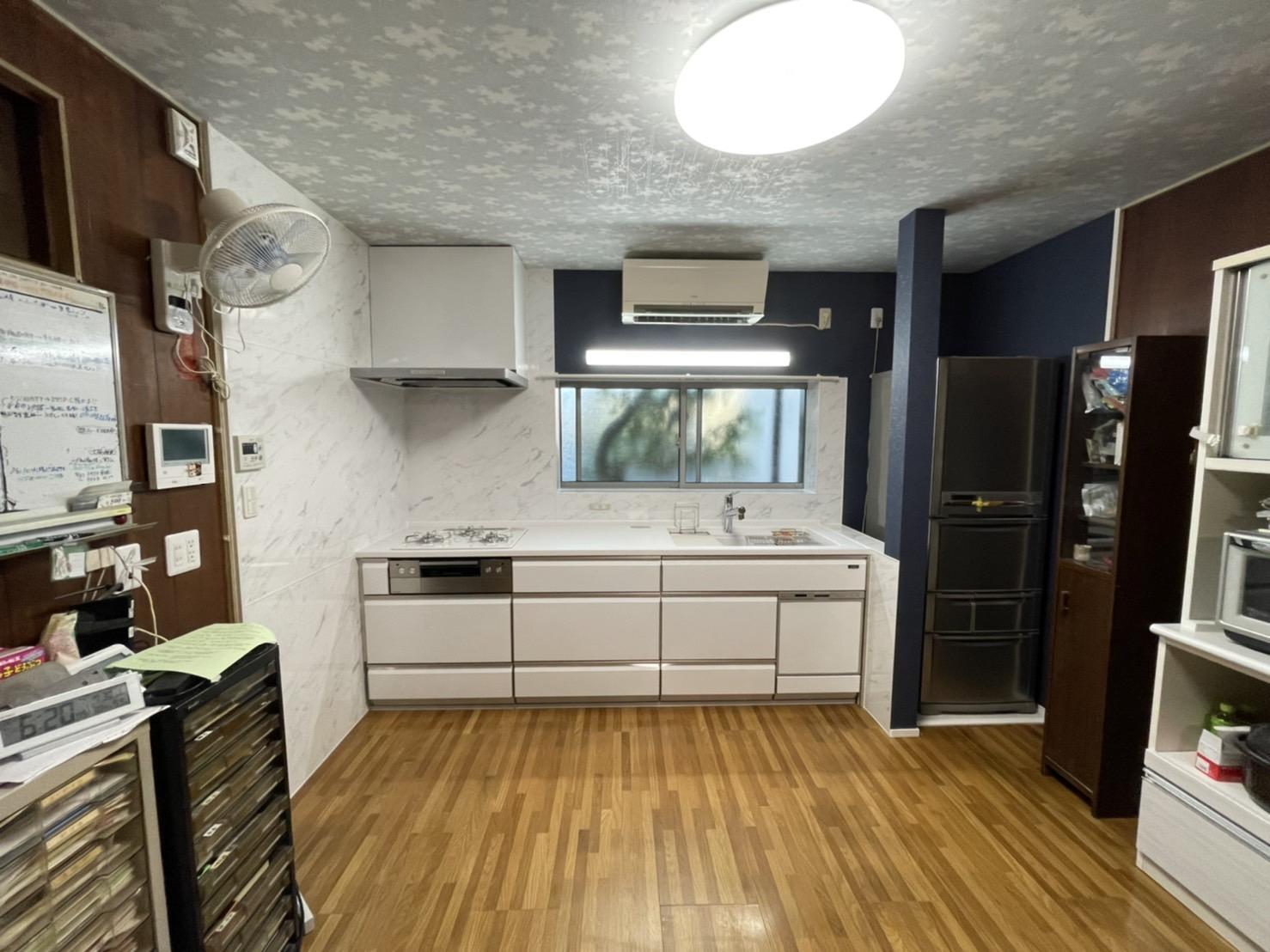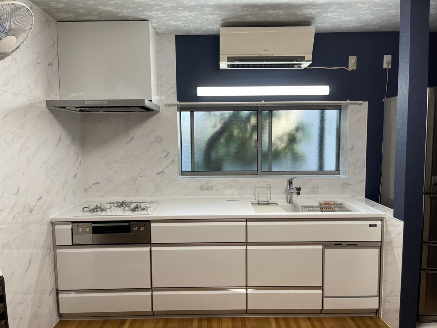 置き型キッチンからシステムキッチンへ交換。冷蔵庫の位置や窓もあわせて交換しました。