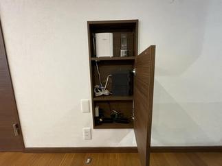 1階部分のフルリノベーションをご依頼いただきました。今回はリビング部分をご紹介いたします。ヴィータス収納に付加価値をつけるべく、エコカラットプラス・間接照明とお客様ともに工夫させていただきました。もうひとつトイレに使用しがちな埋込収納を、モデム収納として工夫しました。コンセントや棚板のくり抜きなど細工して、見事納めました!