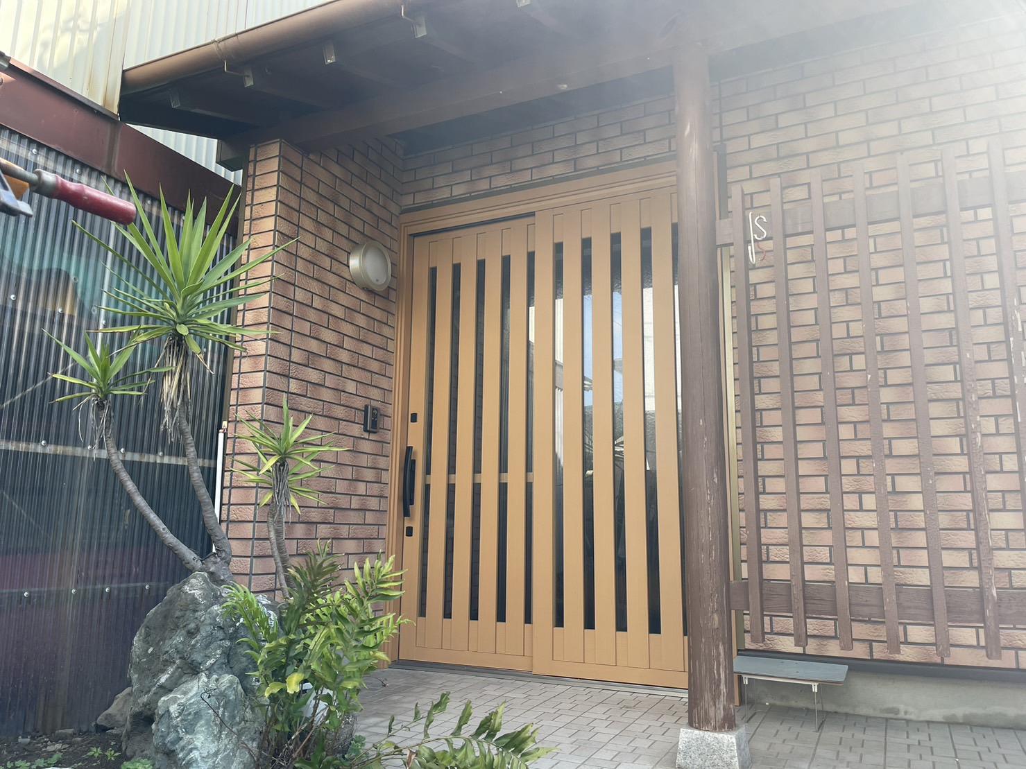 玄関引き戸「リシェント」交換リフォーム。CAZASを取付けしました。1日で工事完了しました。