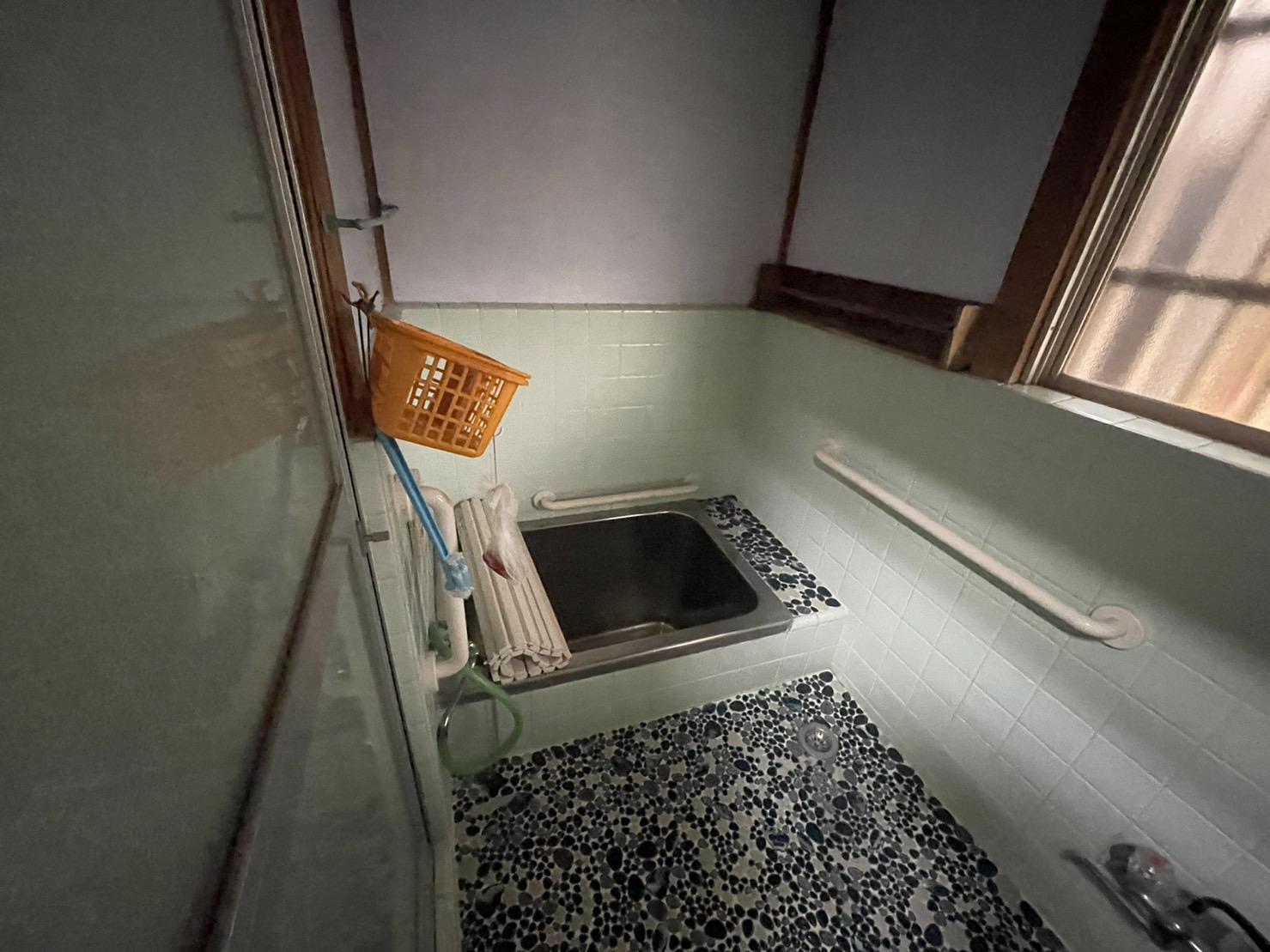 1坪サイズのシステムバスにするため、間仕切り壁撤去しました。窓サイズも変更、プライバシー重視で高窓にしました。