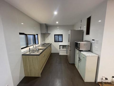 キッチン解体してから、システムキッチン新設→壁天井クロスの模様替えの場合、壁の下地やり直し、断熱材の入れ直し、照明器具の位置決め、家電用コンセントの増設等見えない部分での工事が意外と多く、お客様も想像以上に工事が大変だと感じられたようです。が、その分満足度は高く大変喜んでいただきました。