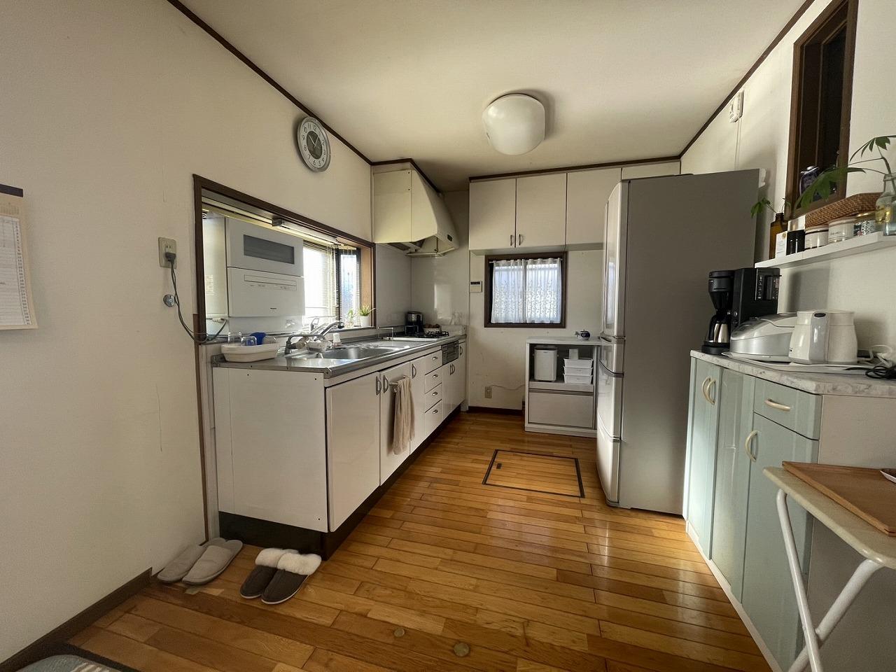 システムキッチンの交換、LDKの壁天井クロス張替え、Kの床をフロアタイル貼りに改装、照明器具交換、家電用コンセント増設、スイッチプレートやコンセントプレートの交換を行いました。清掃性を高めるため、キッチンまわりの壁を背面収納まですべてキッチンパネル貼りに!卓上型食洗機→ビルトイン食洗機、キッチンのシーリングライト→ダウンライト、床も清掃しやすいフロアタイルにしました!