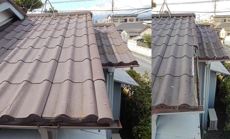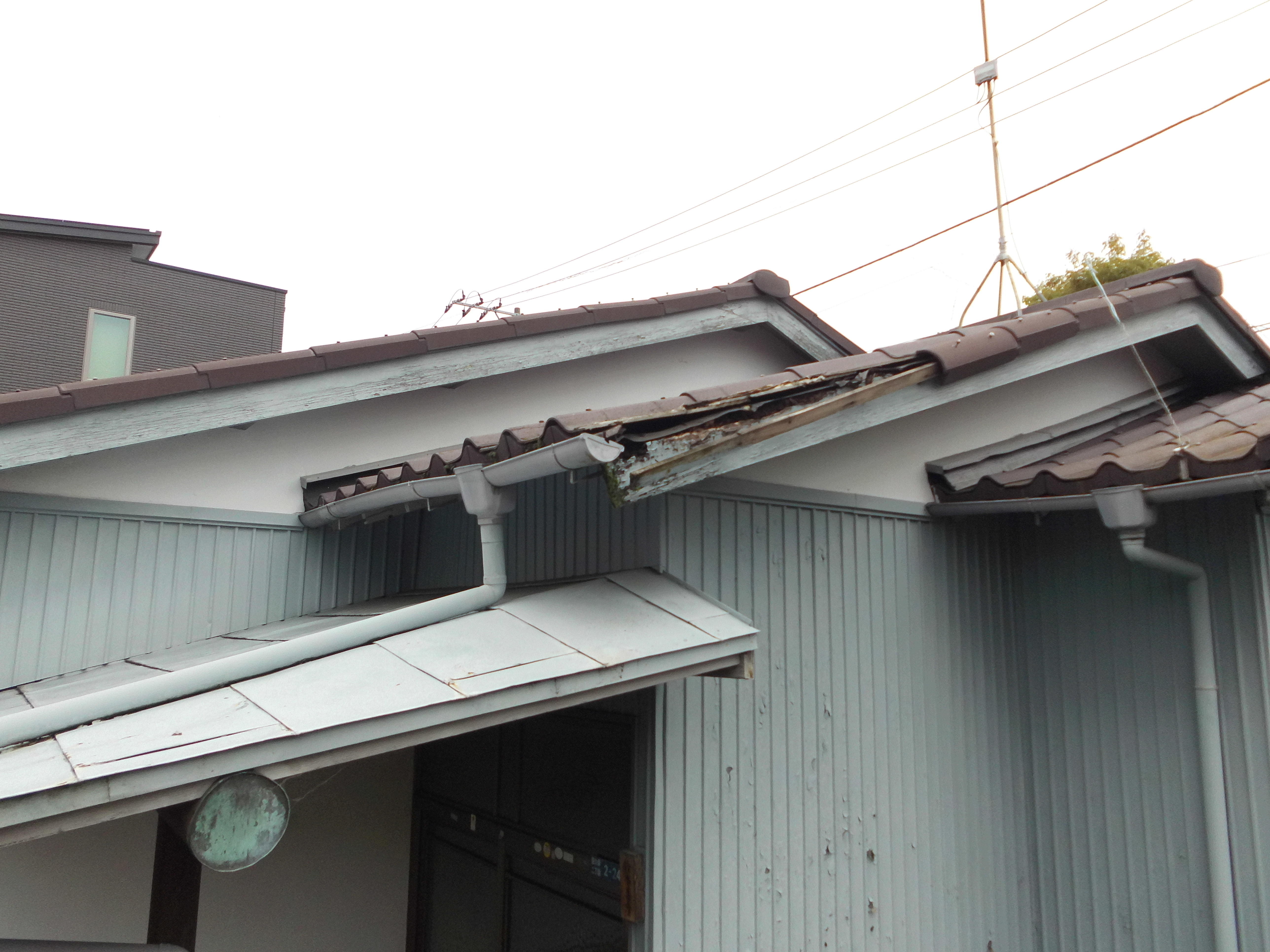 元々の屋根施工業者の瓦の施工が悪く、ケラバ・軒先部分に水がまわる施工だったため、悪い部分は一度屋根瓦をめくり、腐食した垂木・水抜き・破風板・軒天等の木部を新設に取替し、水がまわることのないよう板金処理にてしっかりと処理し、再度同じ瓦を普及し、塗装をし補修工事を完成させました。