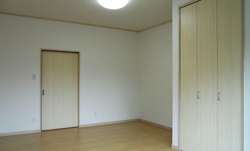 家全体が和風でしたので、和室2間続きの1部屋を洋間へ変更するには、部屋外の廊下側は和の要素を残すようにリフォーム。部屋内部は息子さんのご希望で白を基調としました。約10帖近い洋間へ変更。洋服と物が多いとの事で、部屋内にはクローゼットも作成。