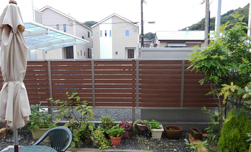 『お客様の不満は何か、現状はどのような状態か施工可能か』最初の打合せでいつも考えさせられます。今回もお客様がキッチンにいる時に、通行人と目線が合わない高さはどの程度かと最初スケールをあて高さを確認しその後、木桟にベニヤを打ち付け実際のフェンスを想定したサンプルを作成し高さ確認を行いました。打合せ・確認もこだわればこだわるほど、完成後お客様にも満足していただけるようです。