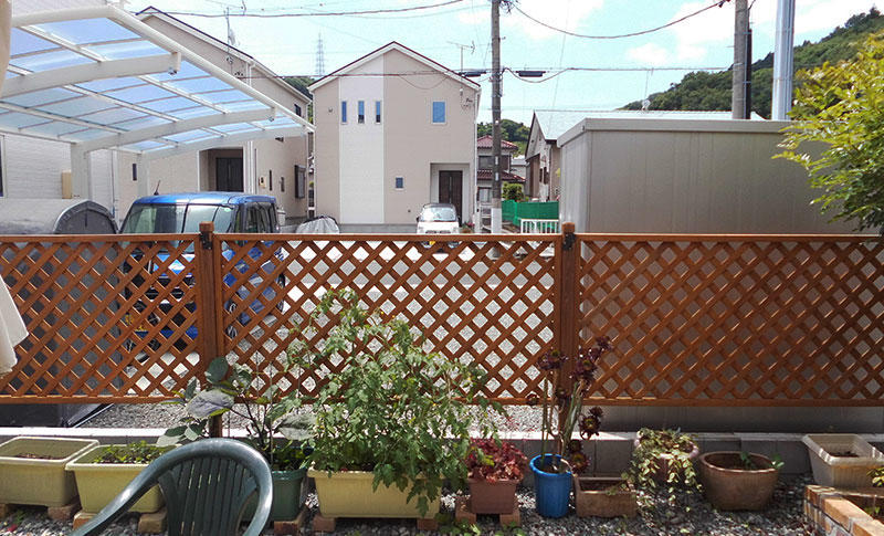 もともとご自分でホームセンターで購入された木製フェンスがありましたが、高さが低かったために家中のキッチンから、外の通行人と視線が合うような状況でしたので、ご不満を解消する為、新設は柱をロング柱を使用し、家中のキッチンから通行人が、見えない高さを確認しフェンスを取付しました。フェンスはLIXIL製品を使用。アンティークで非常にオシャレで、こだわりのある外観になりました。