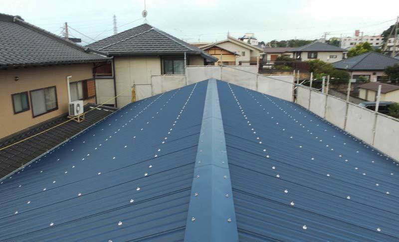 【スレート屋根について】 近年、老朽化したスレート屋根の葺き替えは、既存スレート屋根を取り除き新設屋根を葺き替えすると大掛かりな工事になる為、既存スレート屋根の上から、ガルバリウム鋼板屋根を施工するようにしています。