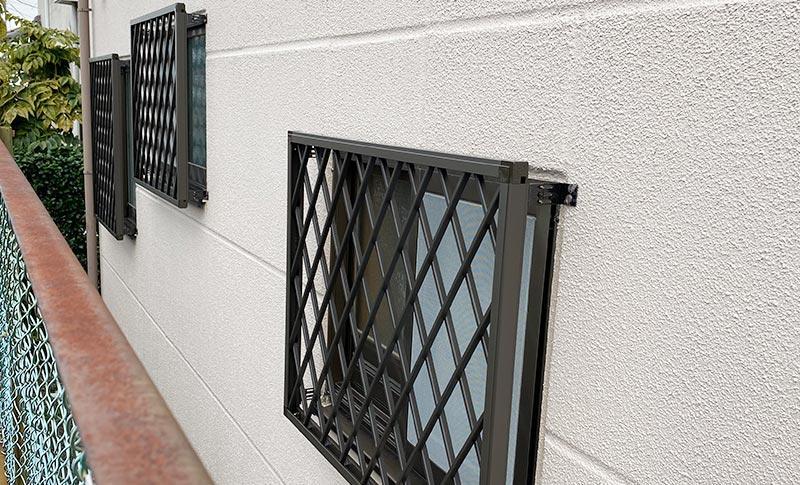 老朽化してしまった面格子を交換。留守中に死角になる場所の防犯性が不安とのことでしたので、面格子がついていない場所にも追加で新設しました。