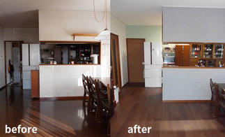 新築して約20年経過。2世帯での暮らし。今後の事も考え子供、孫たちに快適な暮らしをということで、ご両親が出来るときに手を入れておきたいとのご希望で外部、内部の改修を行いました。外部は落ち着きのある抹茶色を基調に塗替え。内部クロス(ダイニング、階段吹き抜け部分)もアクセントをつけ非常にオシャレな内装に仕上がりました。