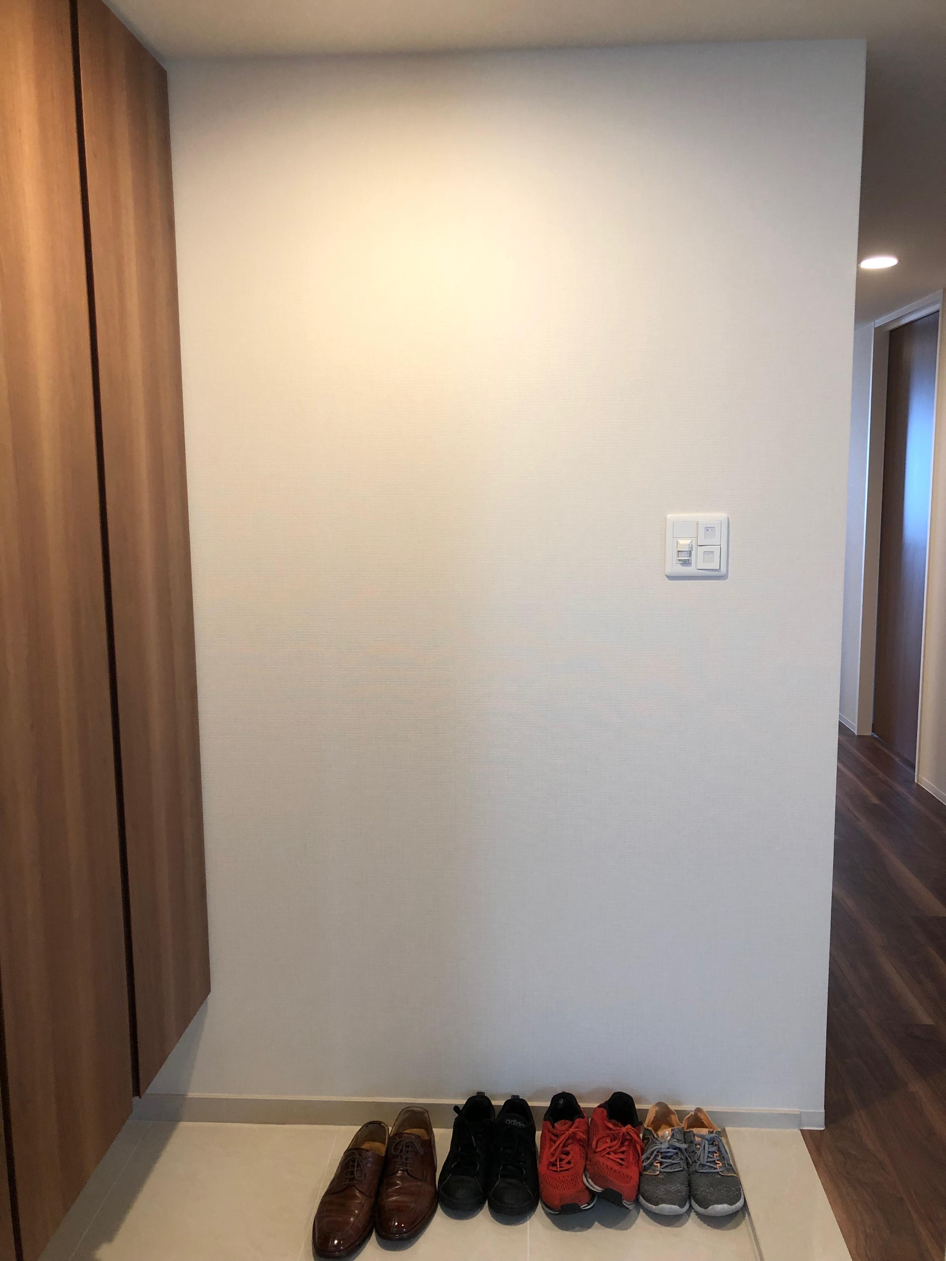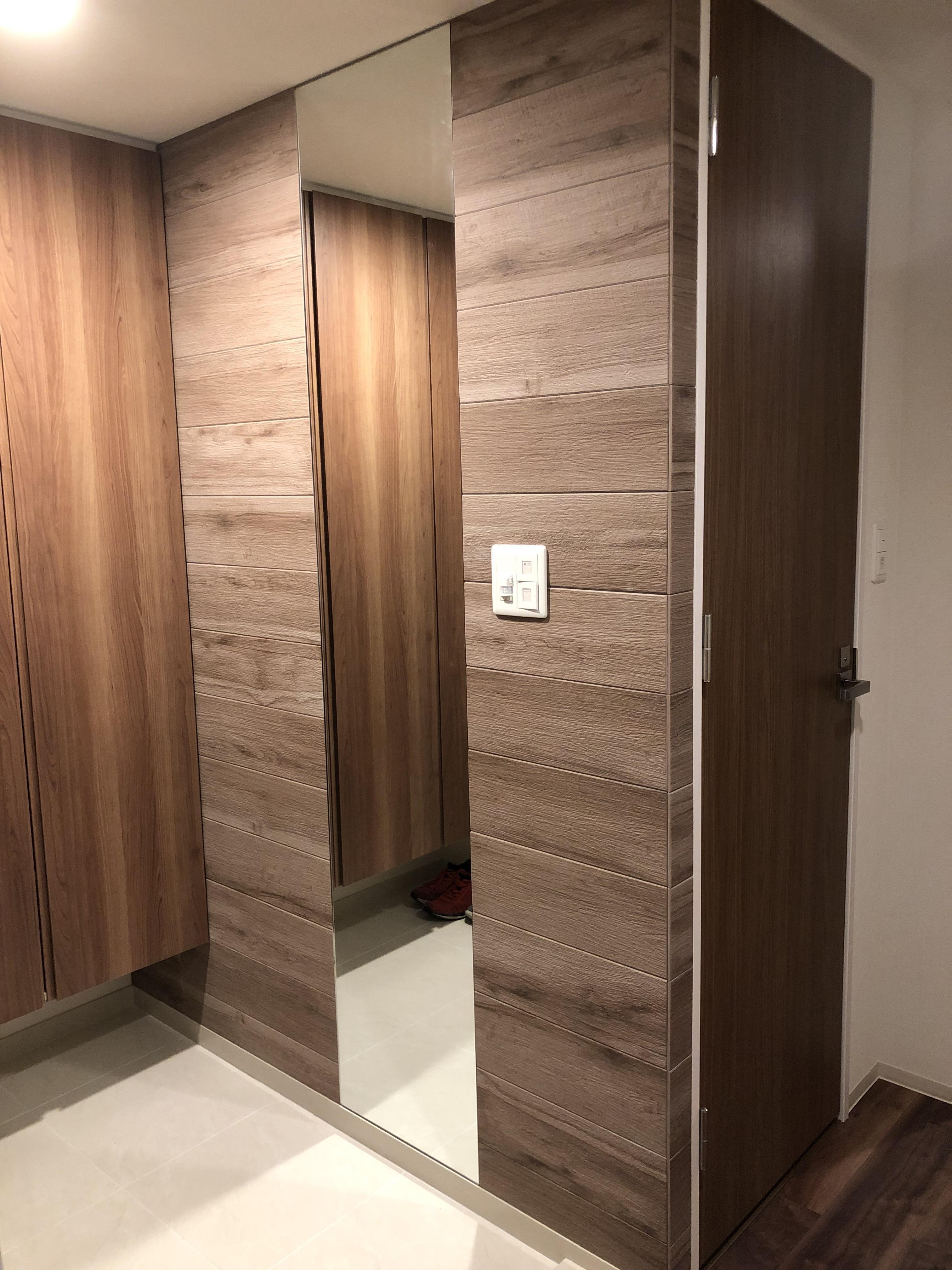 シンプルな玄関に大型ミラー設置