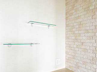 ガラス板の棚も付けてより統一感のある空間になりました!