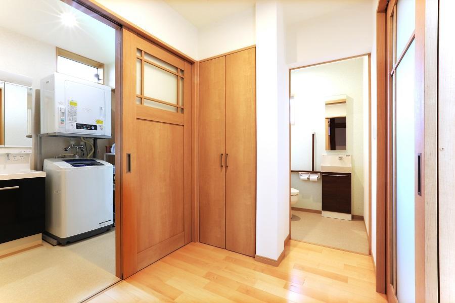 お母様がご高齢になったときのため、またご自身が退職後快適に過ごすため「生活スペースの寒さ解消をしたい」とのご要望でした。大きいお屋敷ですので、すべてには手を付けずに毎日過ごすエリアに重点を絞って断熱を計画。LDKを中心に断熱エリアの中にトイレや脱衣室などへの動線設けることで、ヒートショックを防ぎます。水廻り設備の一新に伴い、いざというときの備えとして手すりの設置、腰を屈めなくても使いやすい形の取っ手など、身体への負担が少なくなるよう配慮しました。