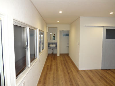 施工の面では、床の不陸が結構ありました。試行錯誤して納めました。 LDKを入ってすぐ目に入ってくる古い学校の教室をイメージした窓の下のレールはこだわり、 かまぼこのようなレールを使いました。