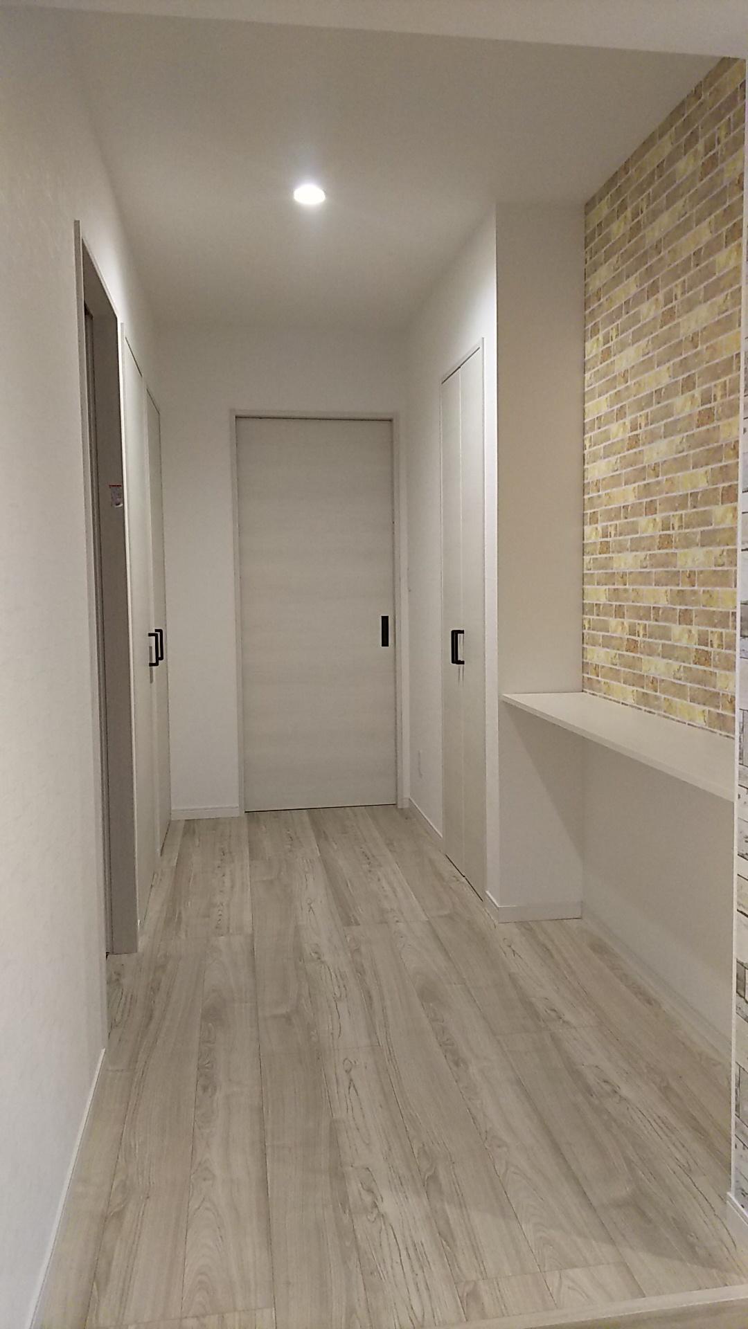 完全な2世帯型リフォーム依頼で、何度か間取りの打合せや仕上げの打合せをしました。2階から工事を始め、1階、そして外構と約7か月の大工事でしたが、施主様も協力してくださったお陰で、無事快適な住まいが完成しました。リフォームは完成度も大事ですが、工事期間中もお客様があまりストレスを感じないような作業手順ですすめ、最後はお互い笑顔で終われる事を意識して、工事関係者と連携して行う事が大切だと、改めて感じさせられました。