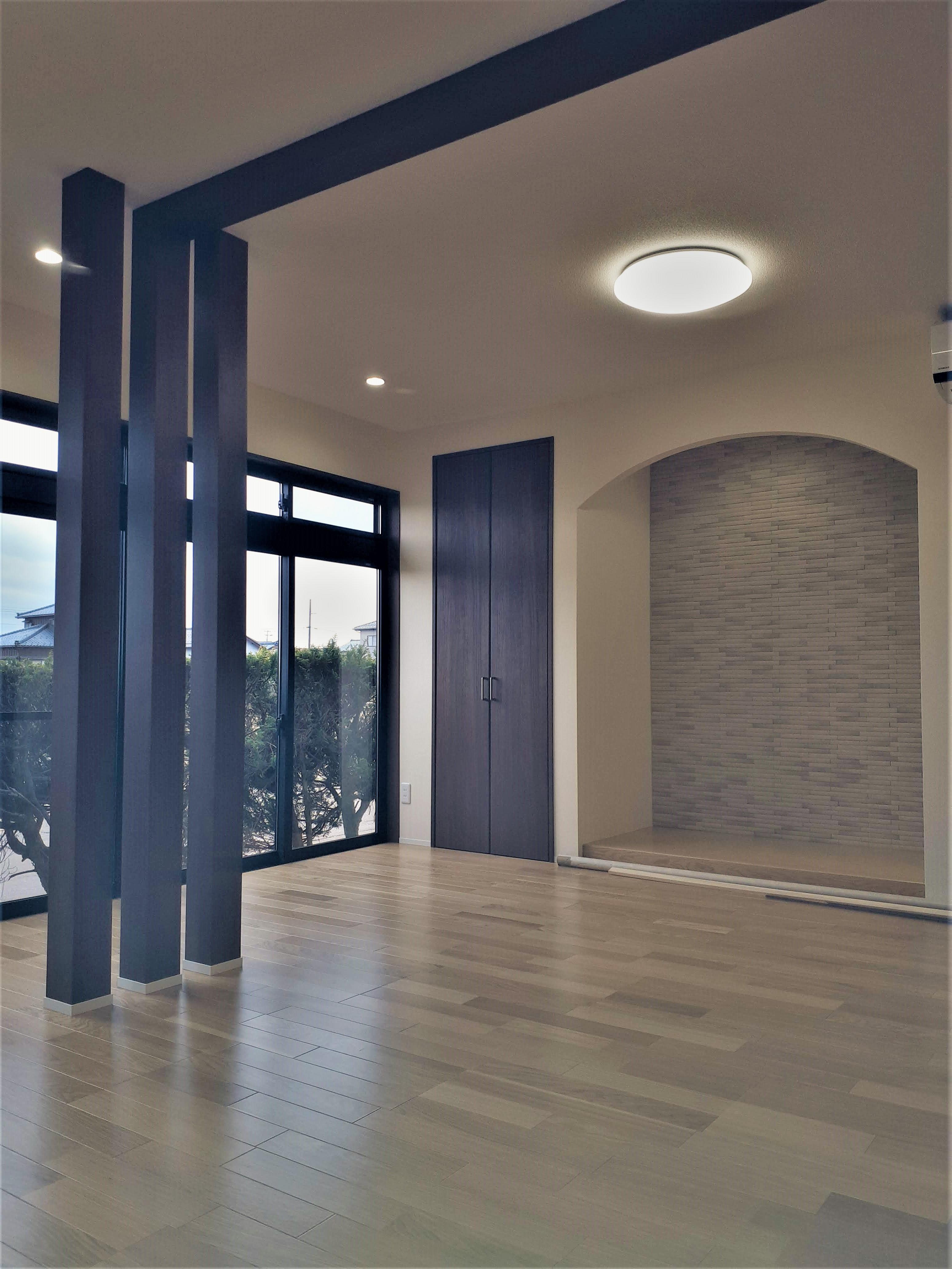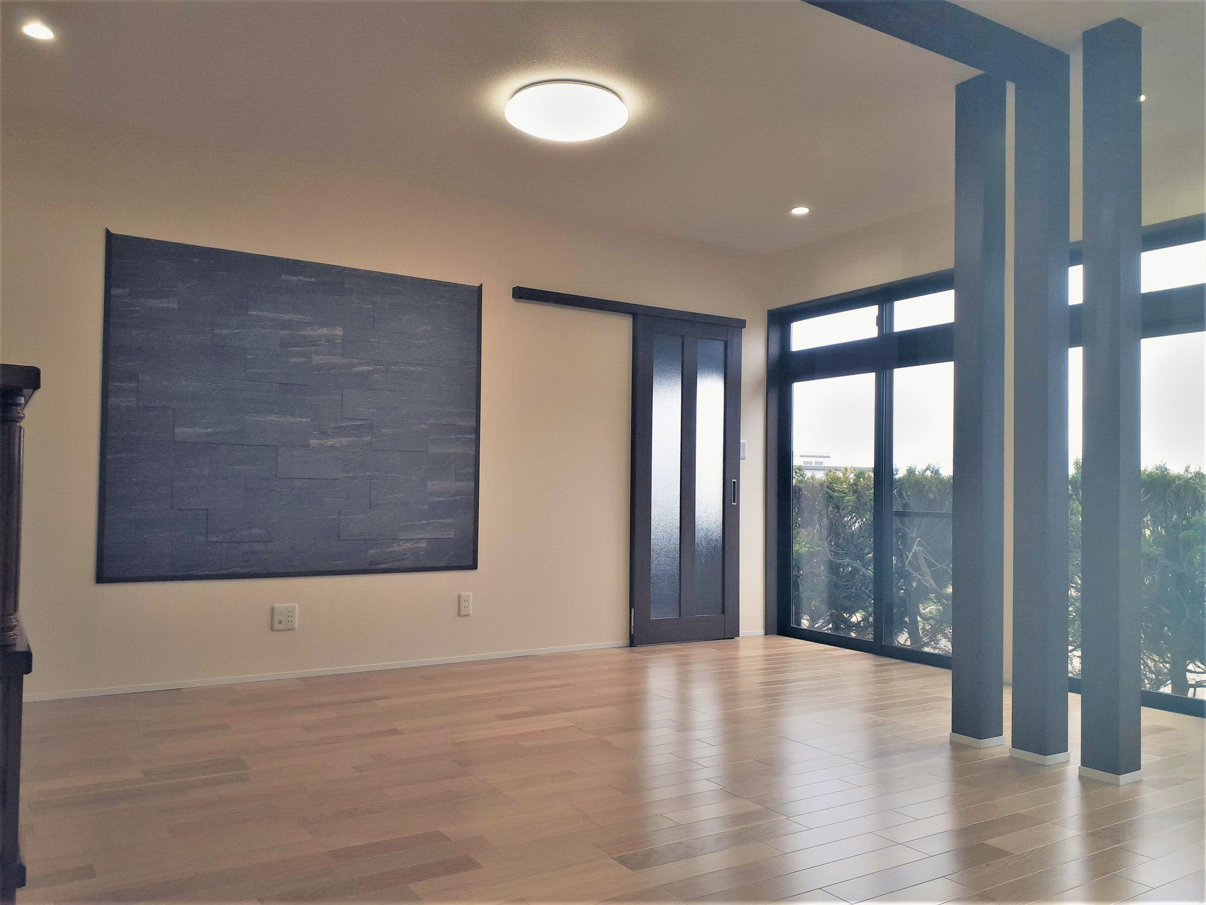 現状使っていない和室の2部屋を、自分達の普段使いするための居間へリフォームし、 今使っている居間を寝室にリフォーム。 壁面には、アクセントとしてリクシル製品のエコカラットを貼りました。