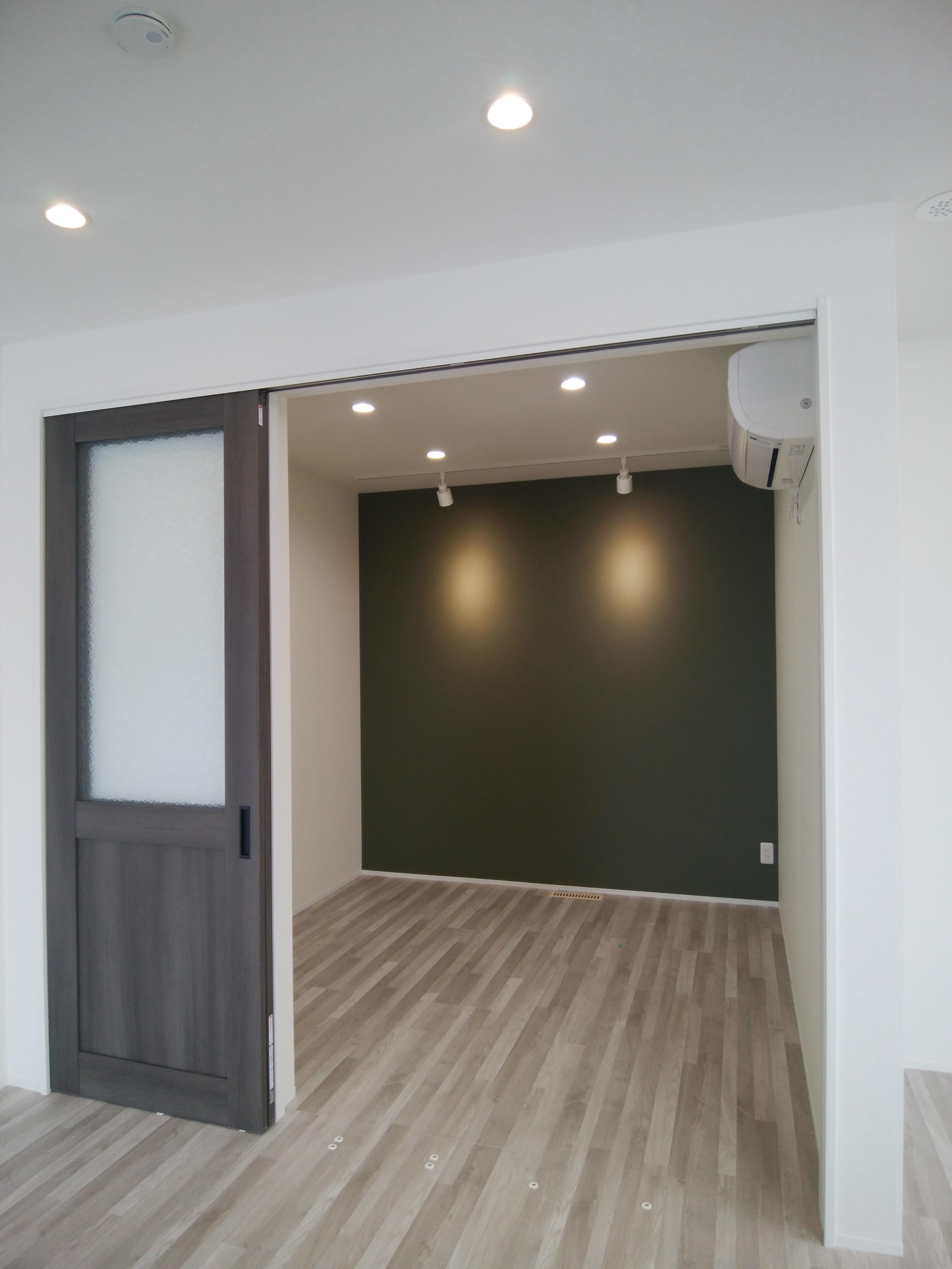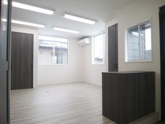快適に事務仕事ができるように、温熱環境を整えた事務所に。 またお客様との打合せスペースの応接室は、壁面の1面を企業カラーのアクセントで 仕上げました。