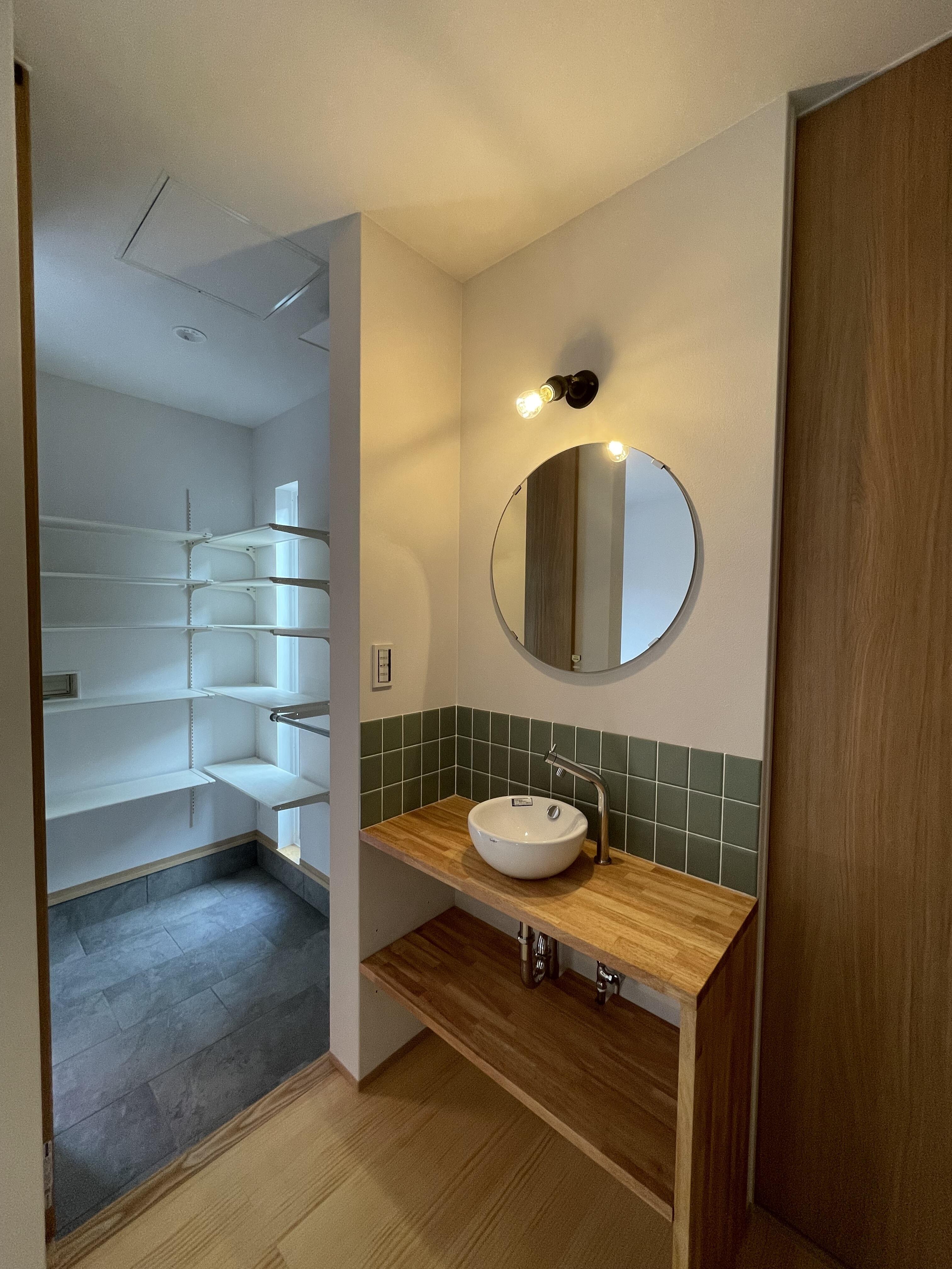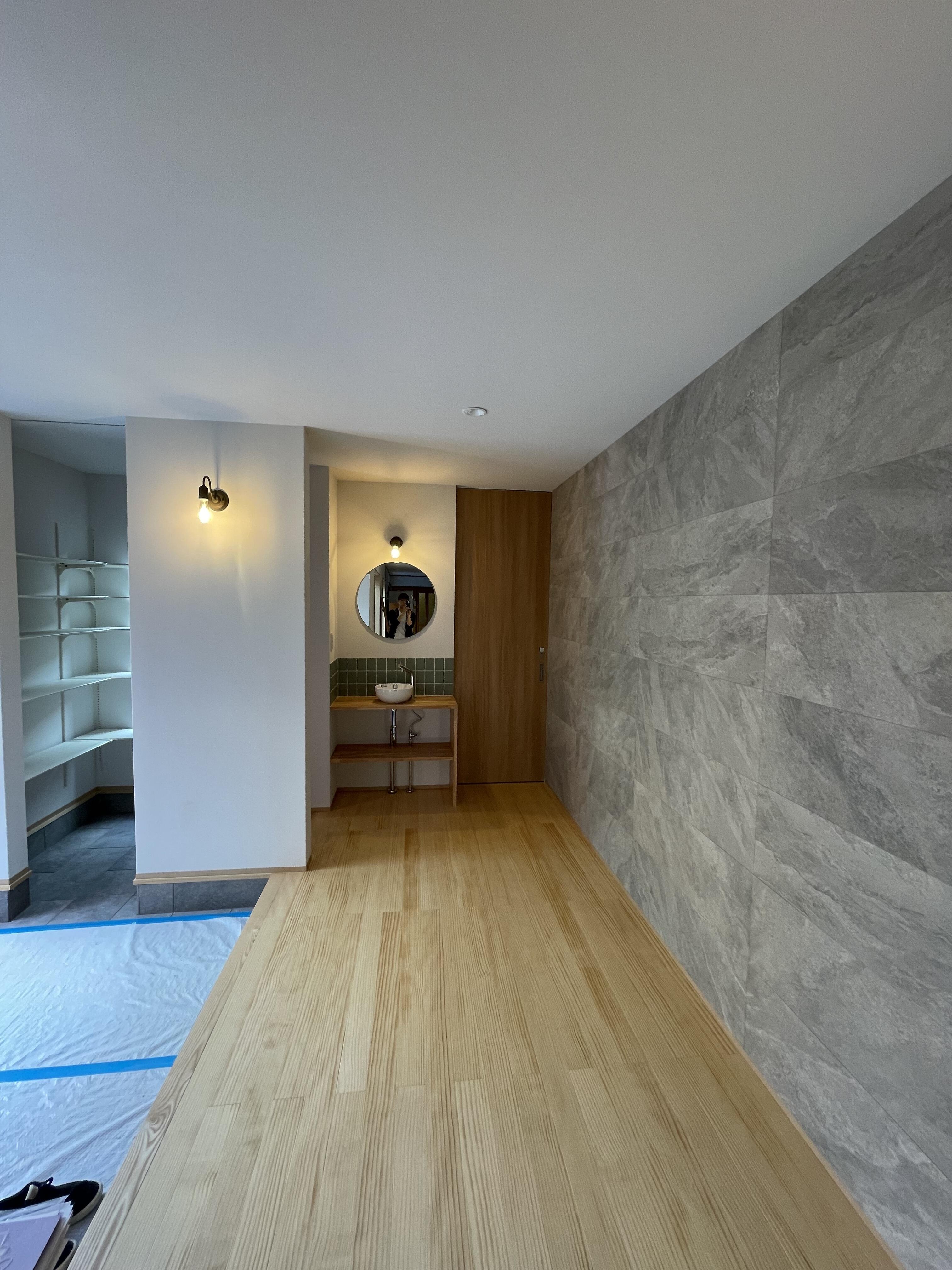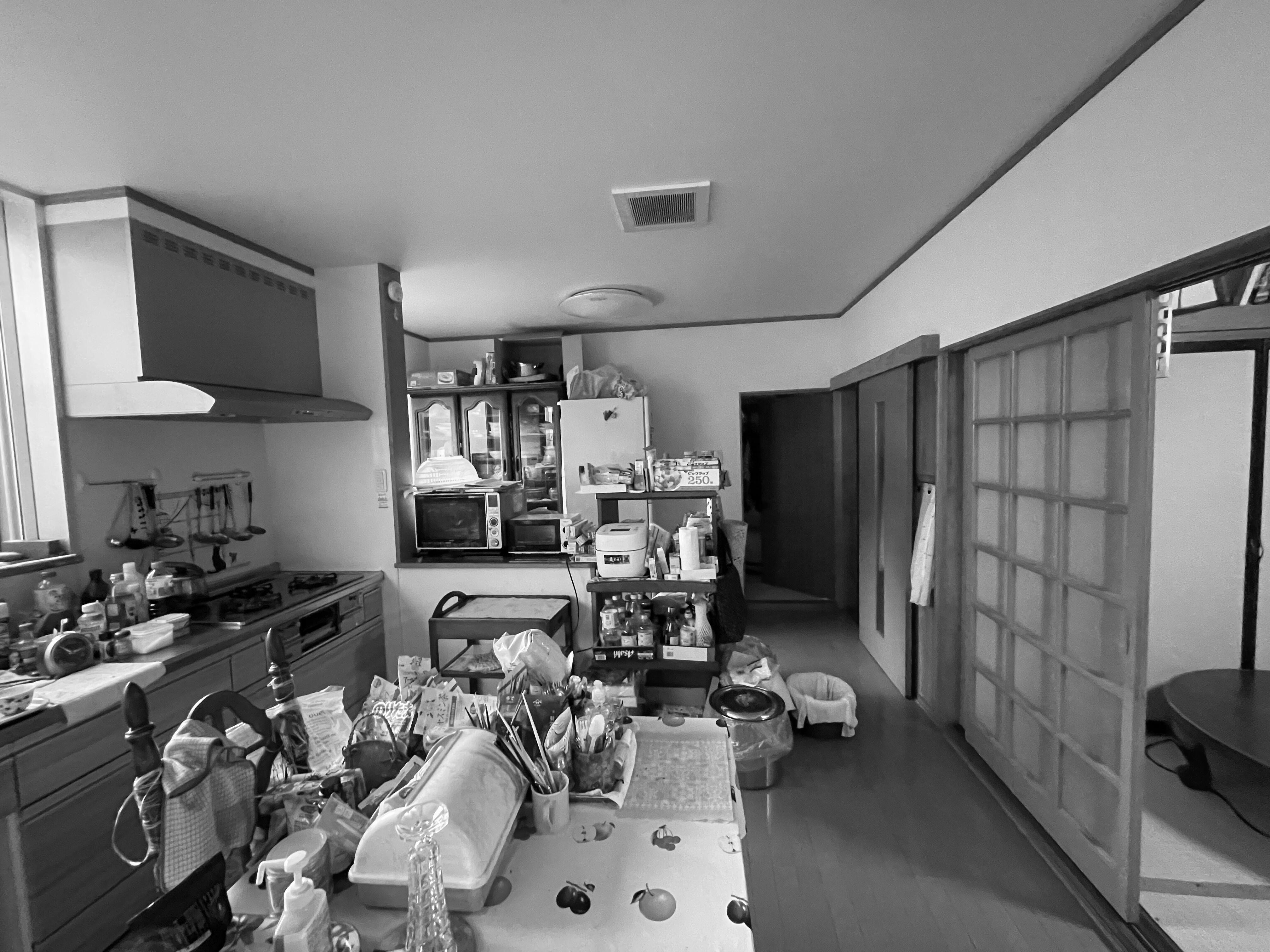 今回は減築してリノベーションという工事でした。 2人暮らしなので2階をほとんど使用していないとの事で2階建て⇒平屋に減築しました。 客間部分も残しつつ、断熱性能を高めたLDKで快適に過ごして頂けるようリノベーションを行いました。 無垢の床板や壁面材を使用し、柔らかい印象の仕上りになりました。 天井の化粧梁は既存の梁を見せています。
