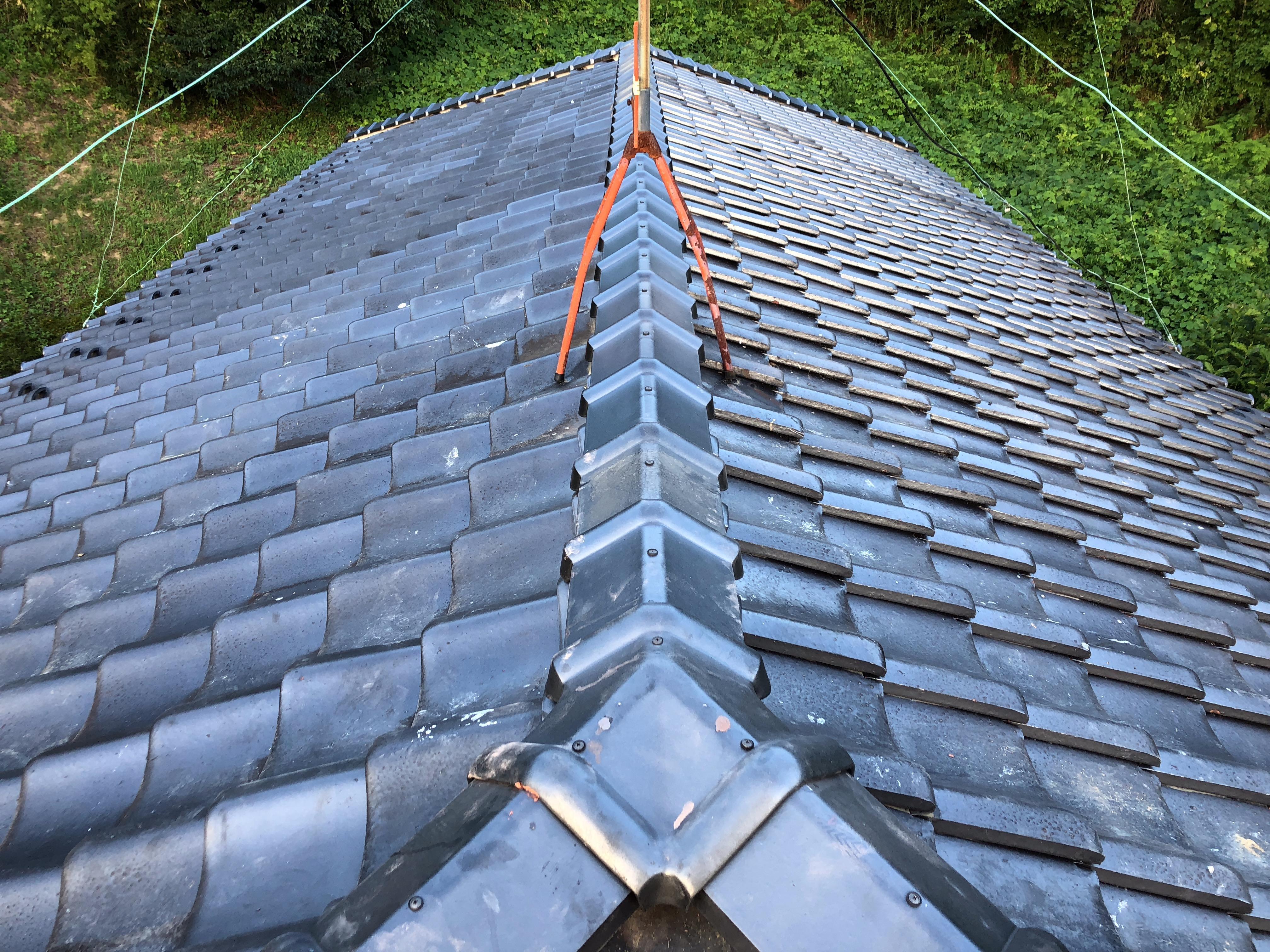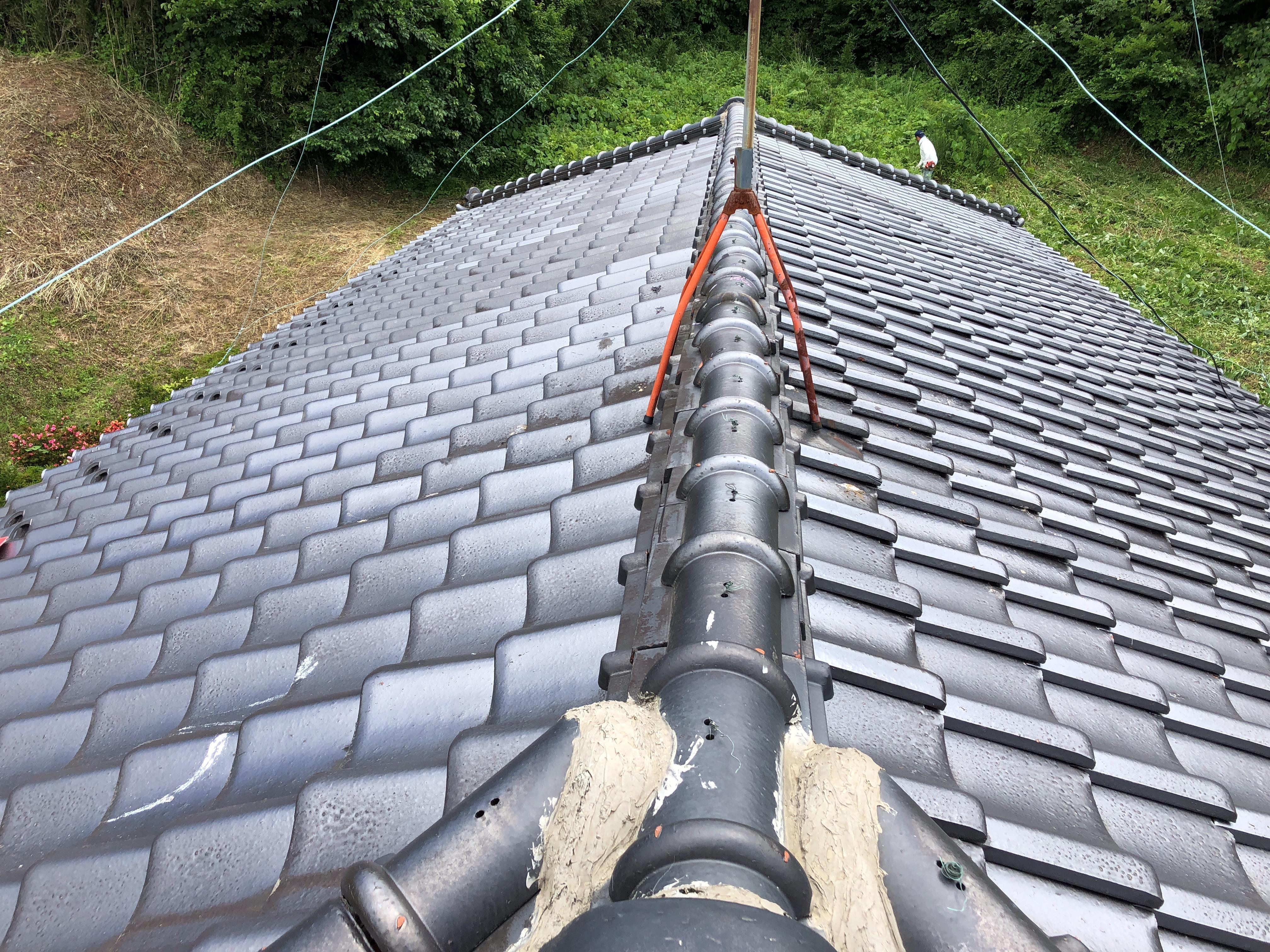 日本瓦屋根の棟瓦を軽量化も兼ねて、雨漏り対策で棟瓦の修繕工事を行いました。