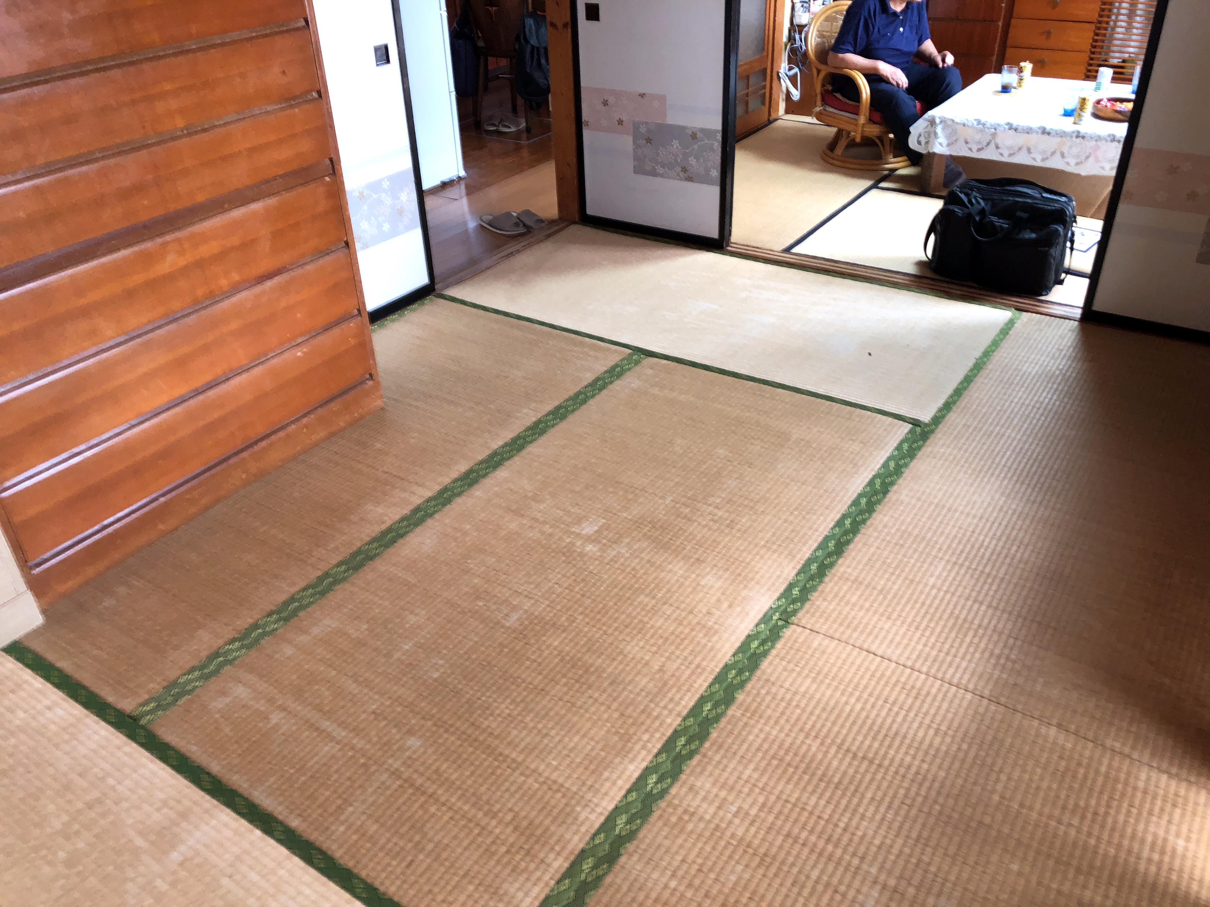 バラバラの時期に表替えを行ったという、二間(つづき間)の畳を縁(ヘリ)も揃えて表替えを行いました。