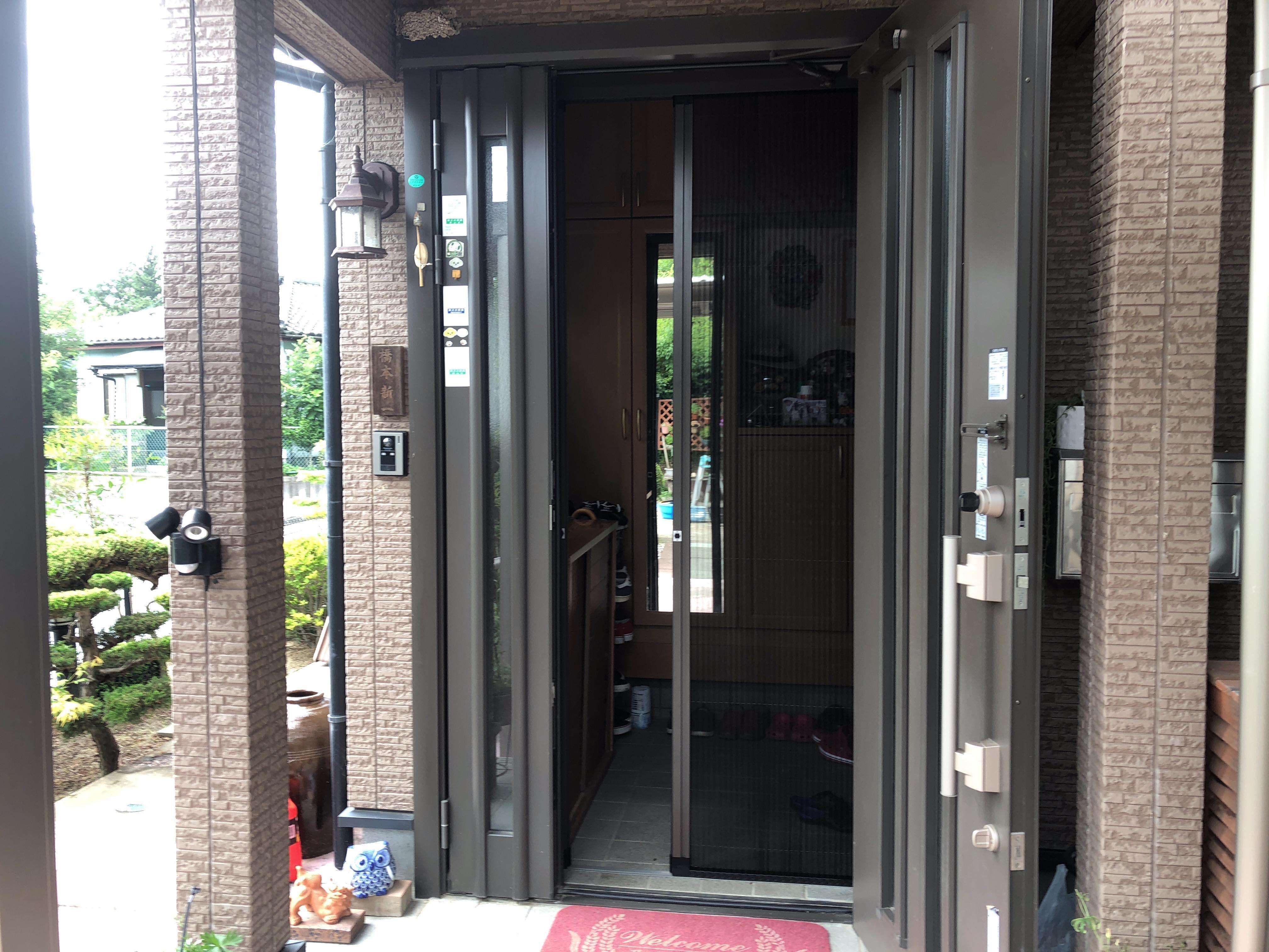 玄関網戸設置で、虫などの侵入を気にすることなく、玄関換気が行えるようになりました。