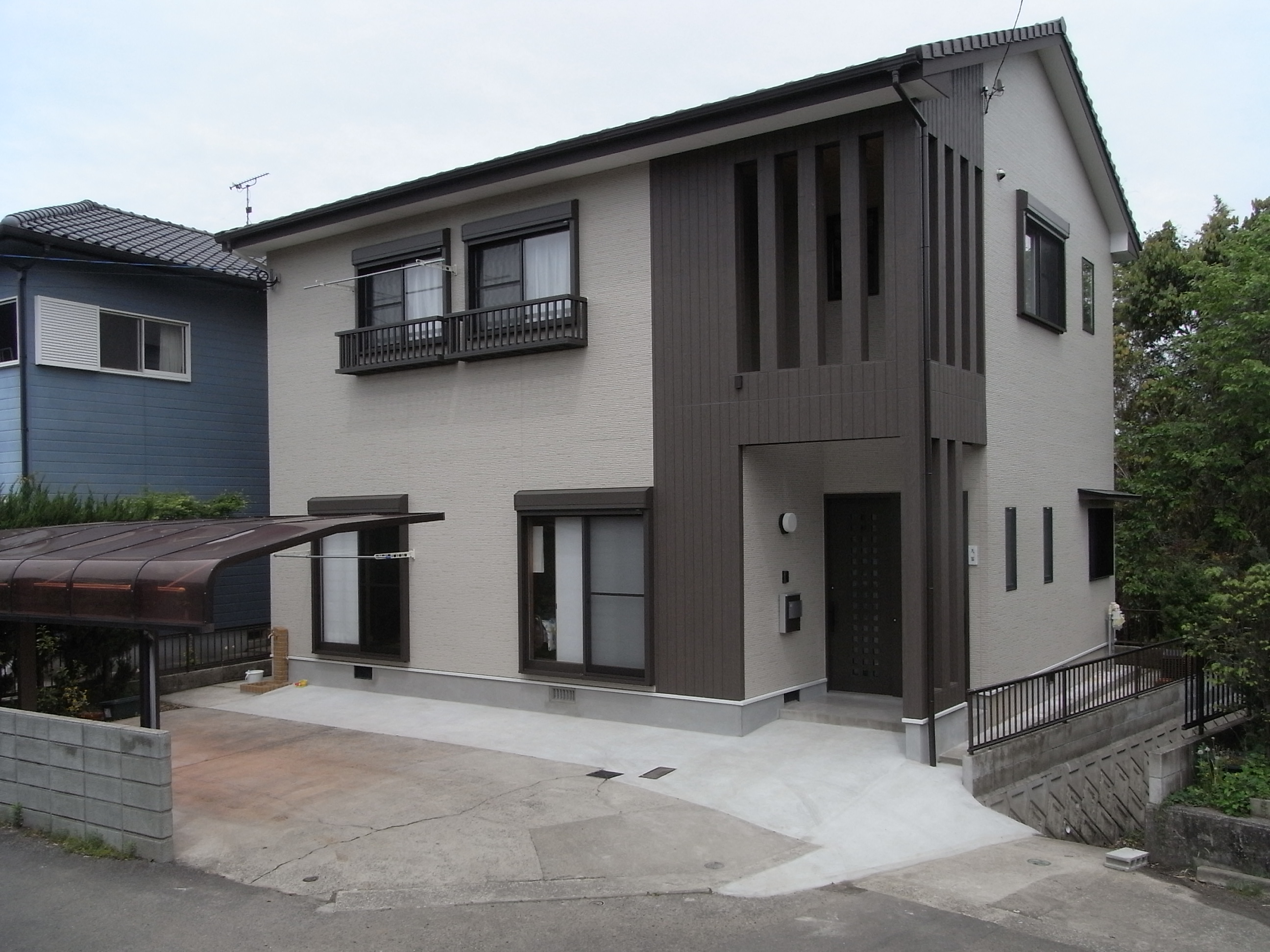 K様のお住まいは、雨漏りや白蟻の被害があり全体的に傷んでいました。また、お子様が小学生になるのを期に、子供部屋を二階に増築することもお考えでした。この機会に家全体のリフォームを決意され、内装・外装を大規模リフォーム。柱や梁を補強し、よりしっかりと耐久性のある家になりました。写真でも分かるように外観が変身!洋風のスタイリッシュな仕上がりになりました。