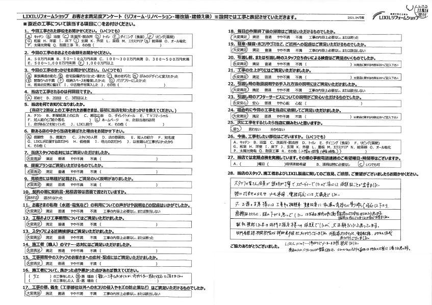 一覧へ戻る今回はご回答頂いたお客様満足度アンケートを