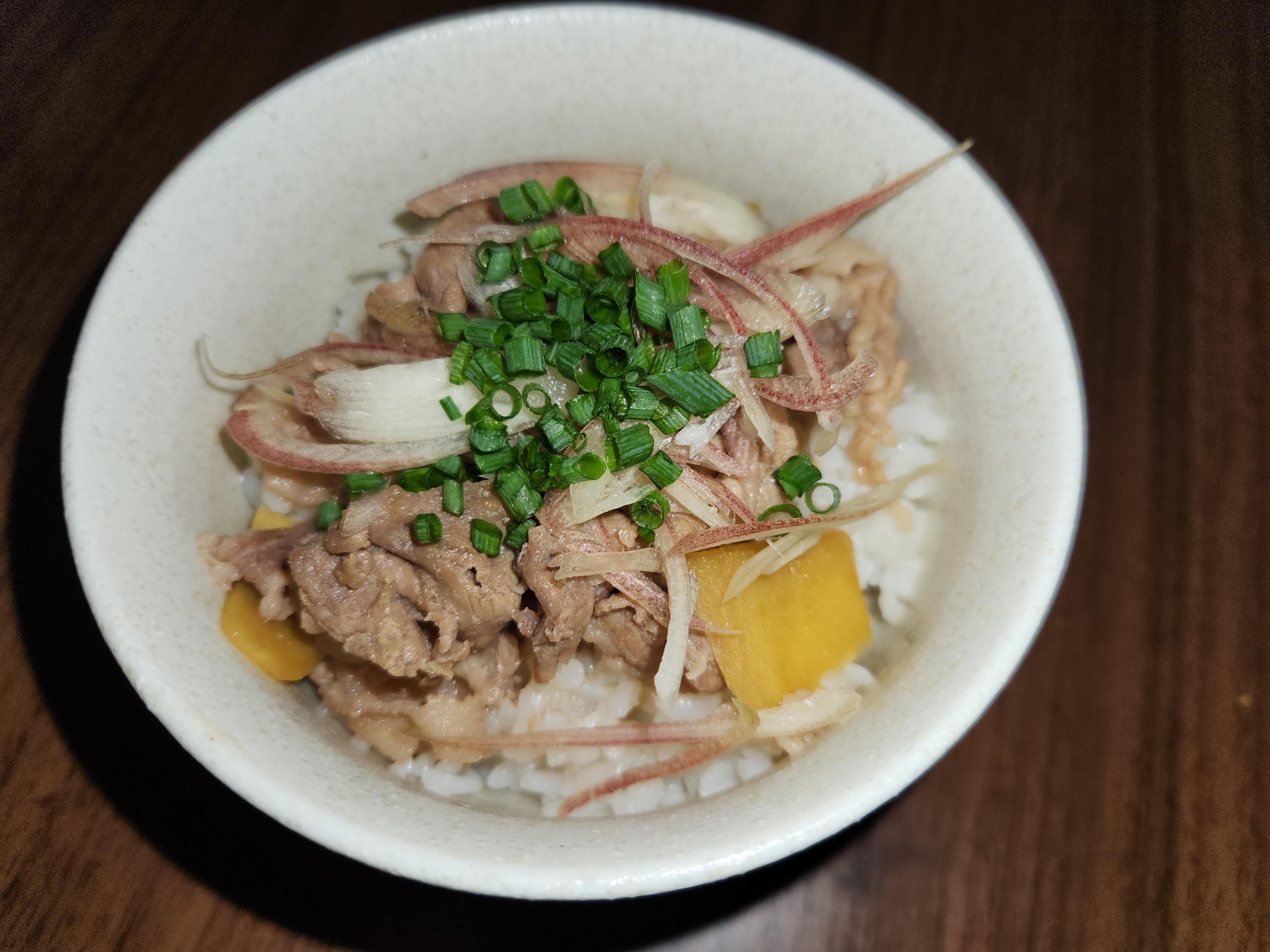 ~豚生姜の丼ぶり(茗荷とネギをのせて)~
