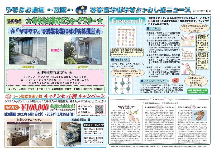 今月もカラーのうちかど通信9月号をどうぞ!!
