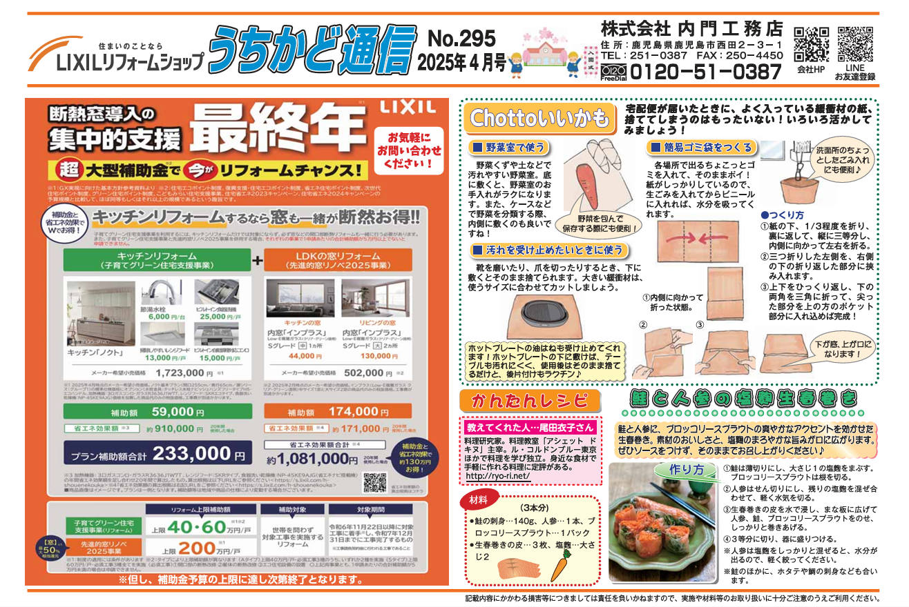 うちかど通信4月号もスタートです!!
