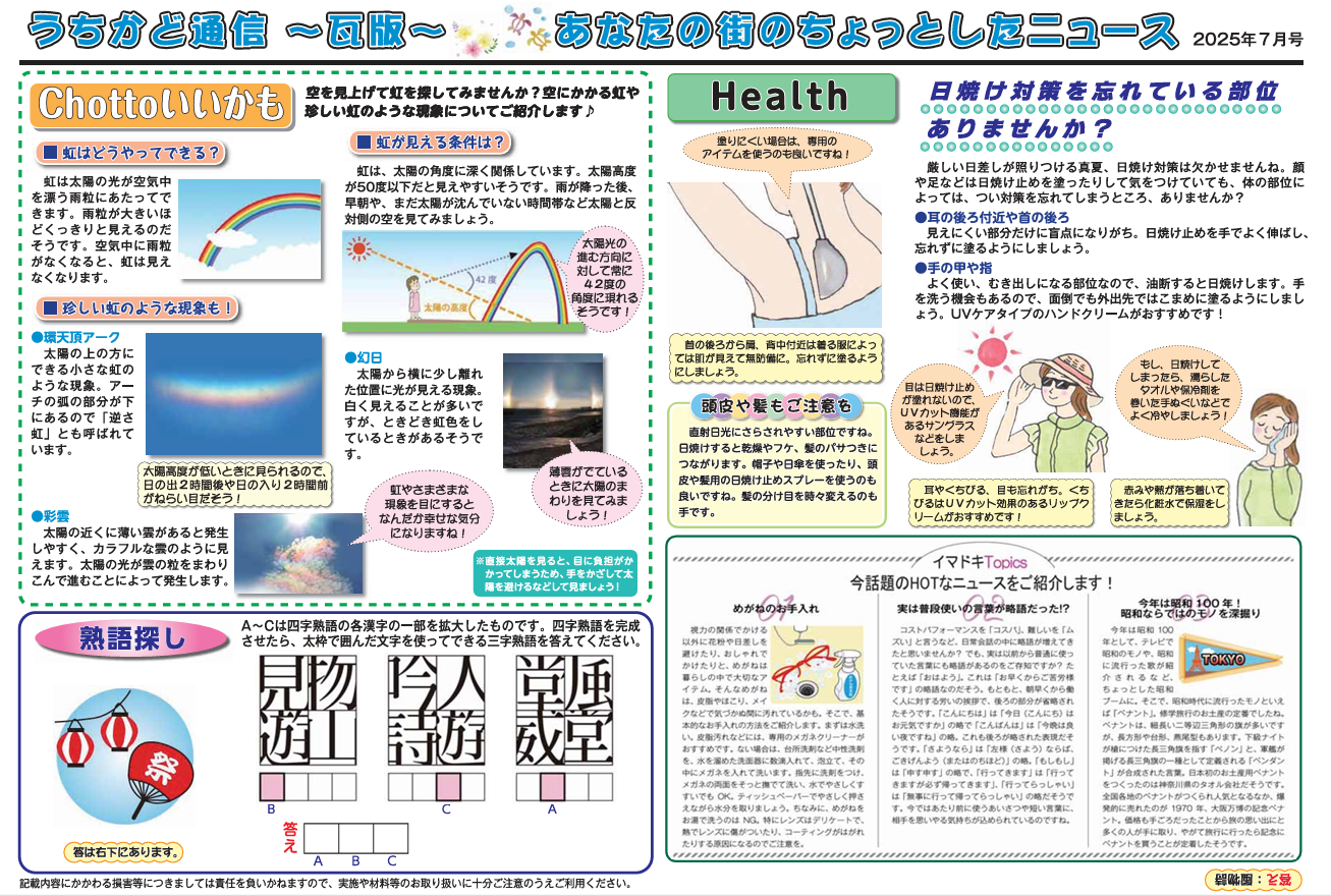 休憩のお供に うちかど通信7月号をどうぞ!!!