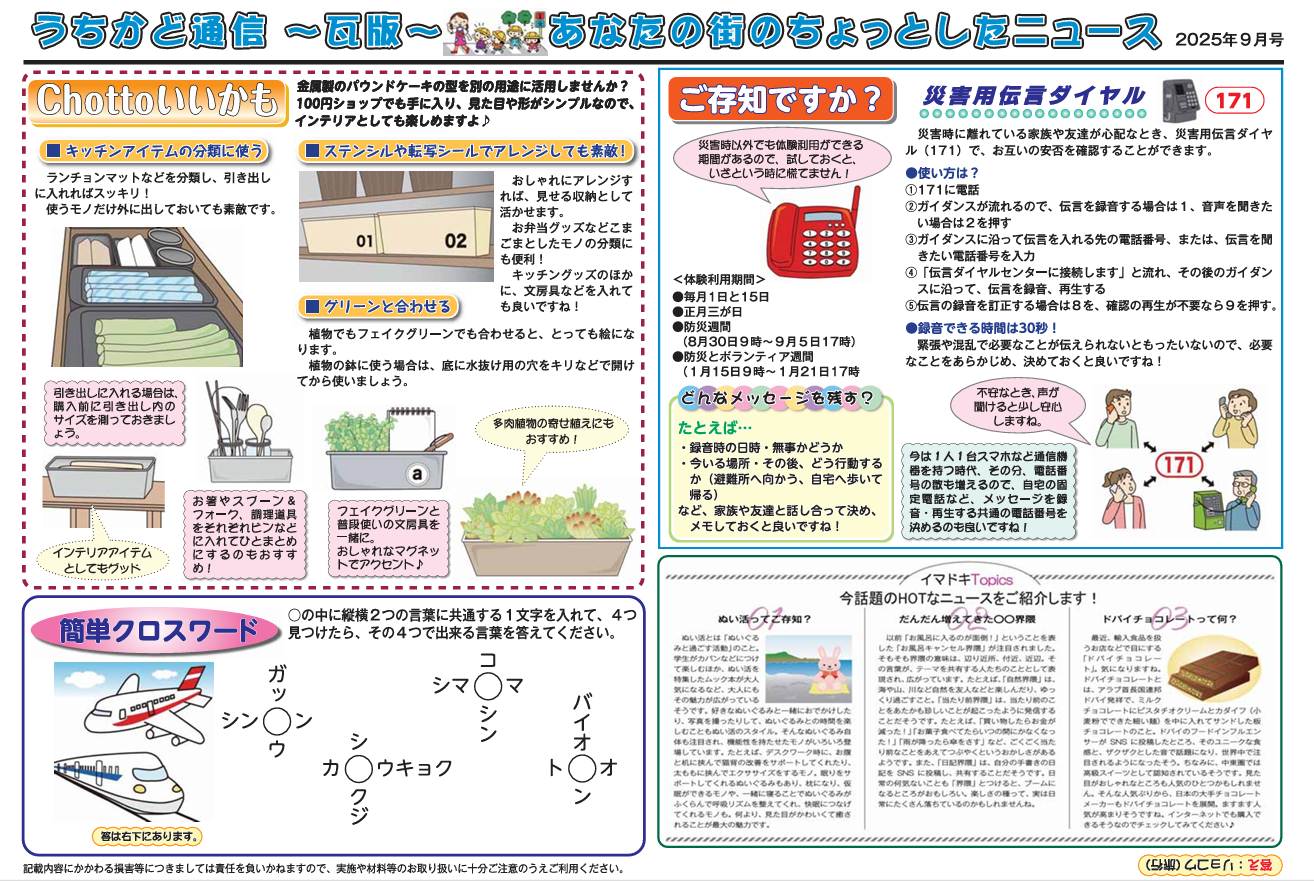 うちかど通信9月号どうぞ!!