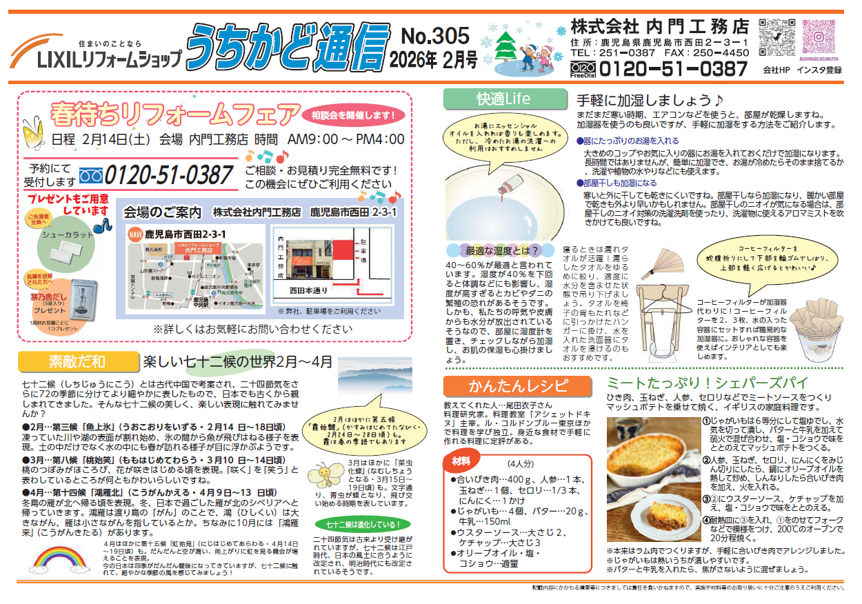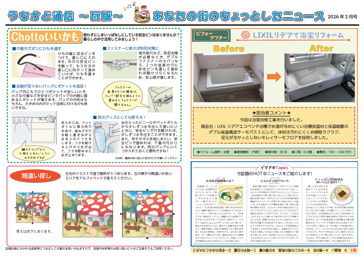 うちかど通信2月号を読んで、ほわあん、ほわあんしてください。