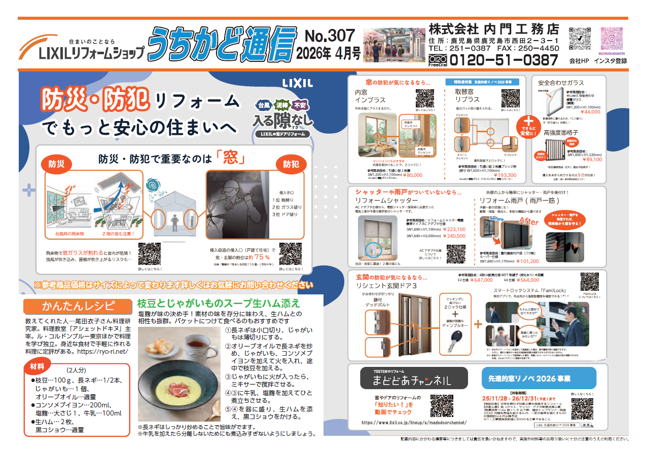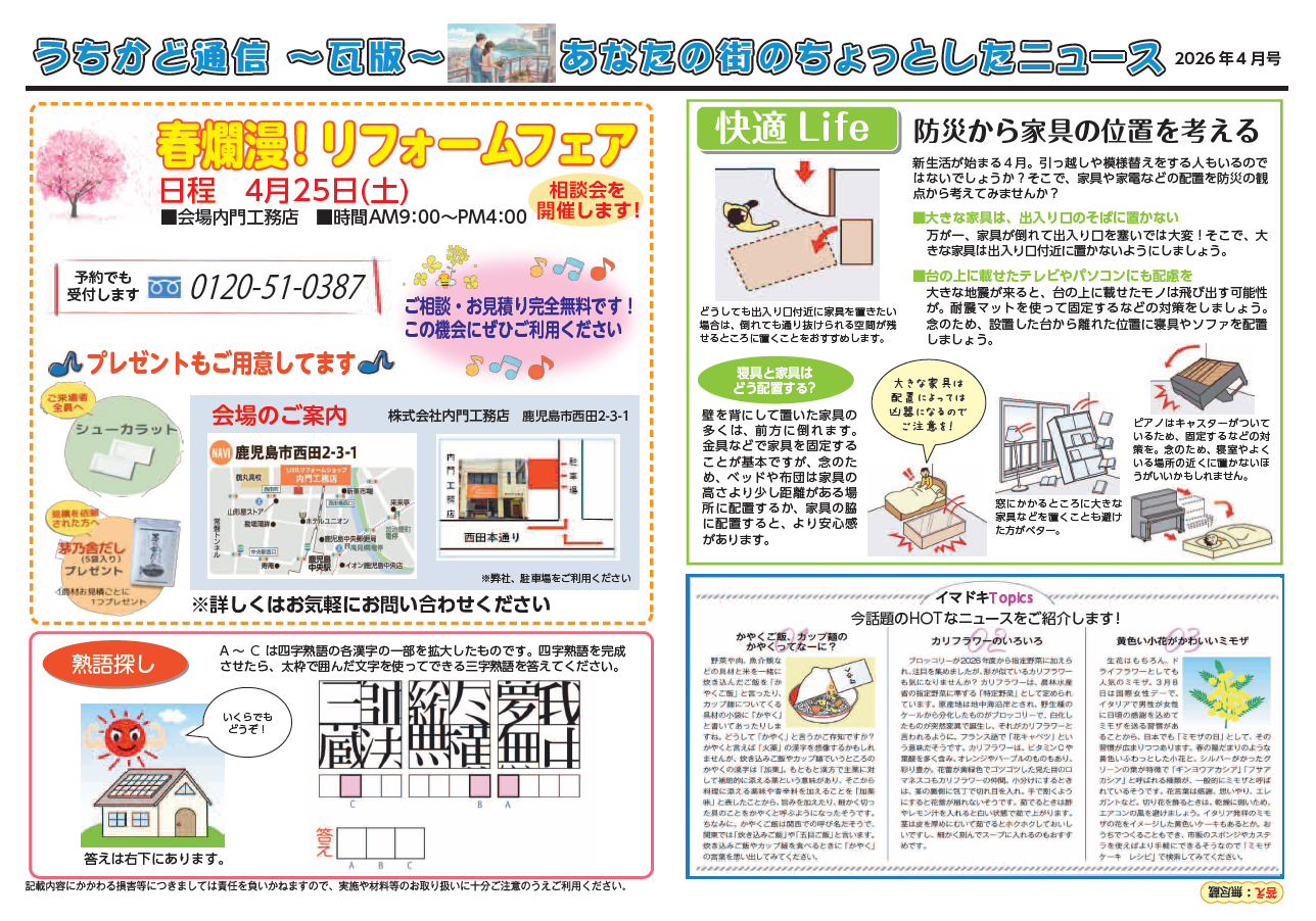 新年度最初の「うちかど通信4月号」をどうぞ!