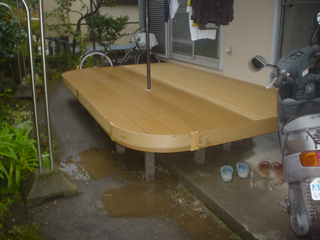 ■塗装品ではないのでデッキブラシ等で手軽に洗えます。人工木デッキ