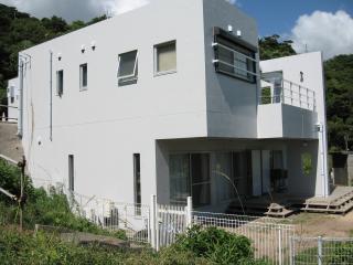 窓から見える景色が、とてもすばらしい、お宅の外壁改修工事を、行いました。外壁から雨漏れも多少あるそうなので、ひび割れ部に低圧注入を行い、外壁塗装を行いました。潮風が強い場所なので、こまめな、メンテナンスが必要かと思われます。