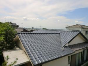 屋根セメント瓦を陶器瓦に葺き替えました。陶器瓦はいつまでも美しい光沢を保ち続ける為、将来の塗装の 塗り替えが不要となります。