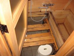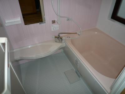 以前は桧風呂だった為、入浴後の水拭き掃除が大変だったそうです。 INAX ラ・バスの特長である① くるりんぽい排水口② 床モザイクパターン(短時間乾燥で冷たさを感じにくいサーモフロア)③ キレイドア④ 鏡面による高級感と清潔感を兼ね備えた壁パネルで、これからは面倒だったお掃除もラクラクになるでしょう!! ※ システムバスルーム~INAX ラ・バス 1216サイズ