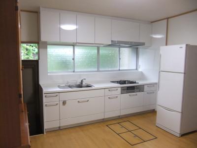 ●奥様のご要望 「出窓が深くてサッシの開け閉めが困る。とにかく、明るくして。」と言うことで出窓を一部解体し、アルミサッシを手前に取り付け直しました。また、システムキッチンの色が白をお選びいただいたので、キッチンパネルも、白系統をお勧めし、統一感を持たせました。「隣室の和室との間を開口し障子を取り付けて明るくしたい。」と言うご要望で、片引き込みの破れにくいワーロン紙を挟み込んだ障子を 取り付けました。和室からの明かりとともに、エアコンの風が直接台所まで来て、ダイニングキッチンがくつろげる場所になった様です。