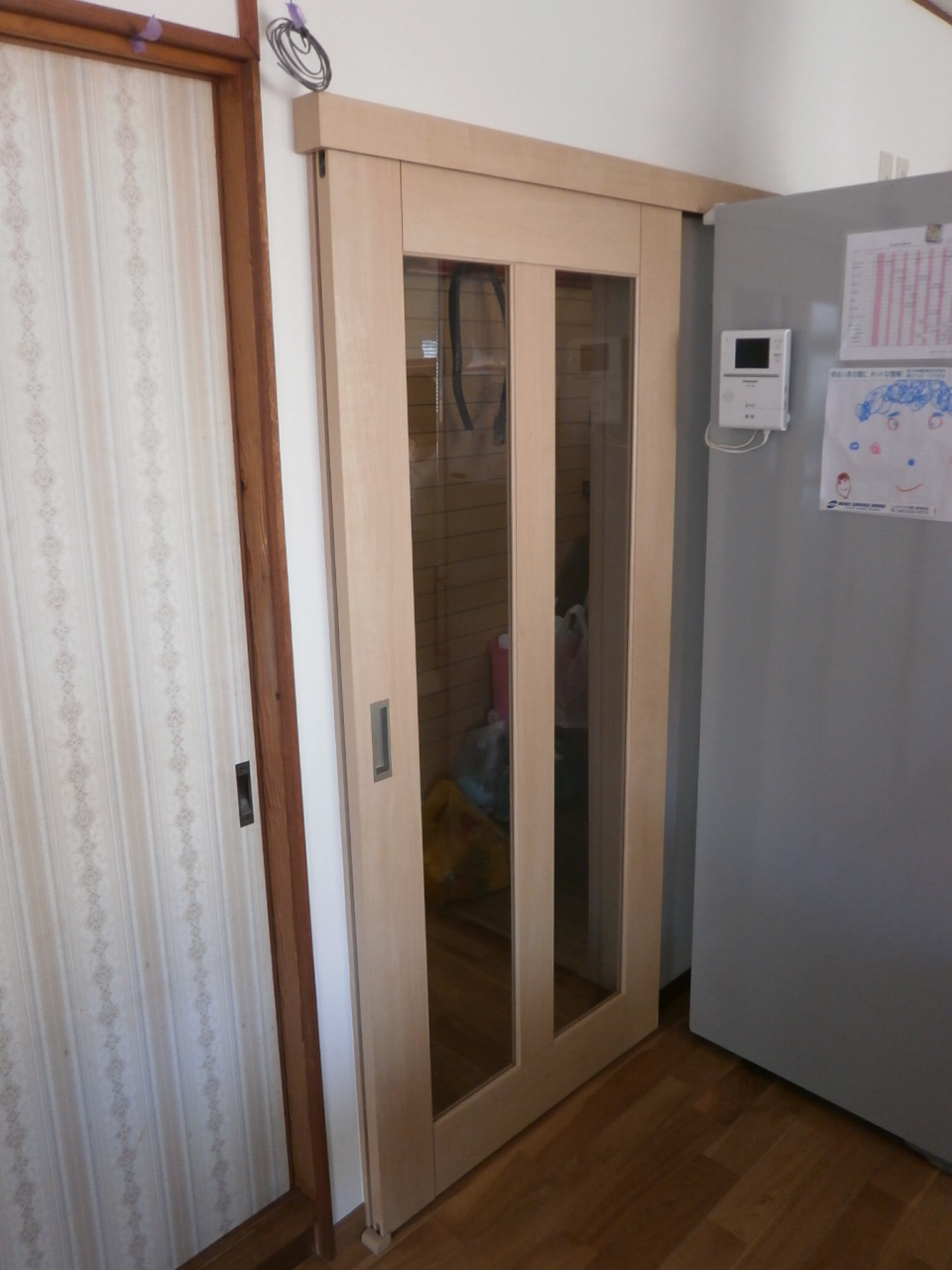 リビング改修:室内建具取替、既存片開き建具⇒LIXILアウトセット方式片引き戸