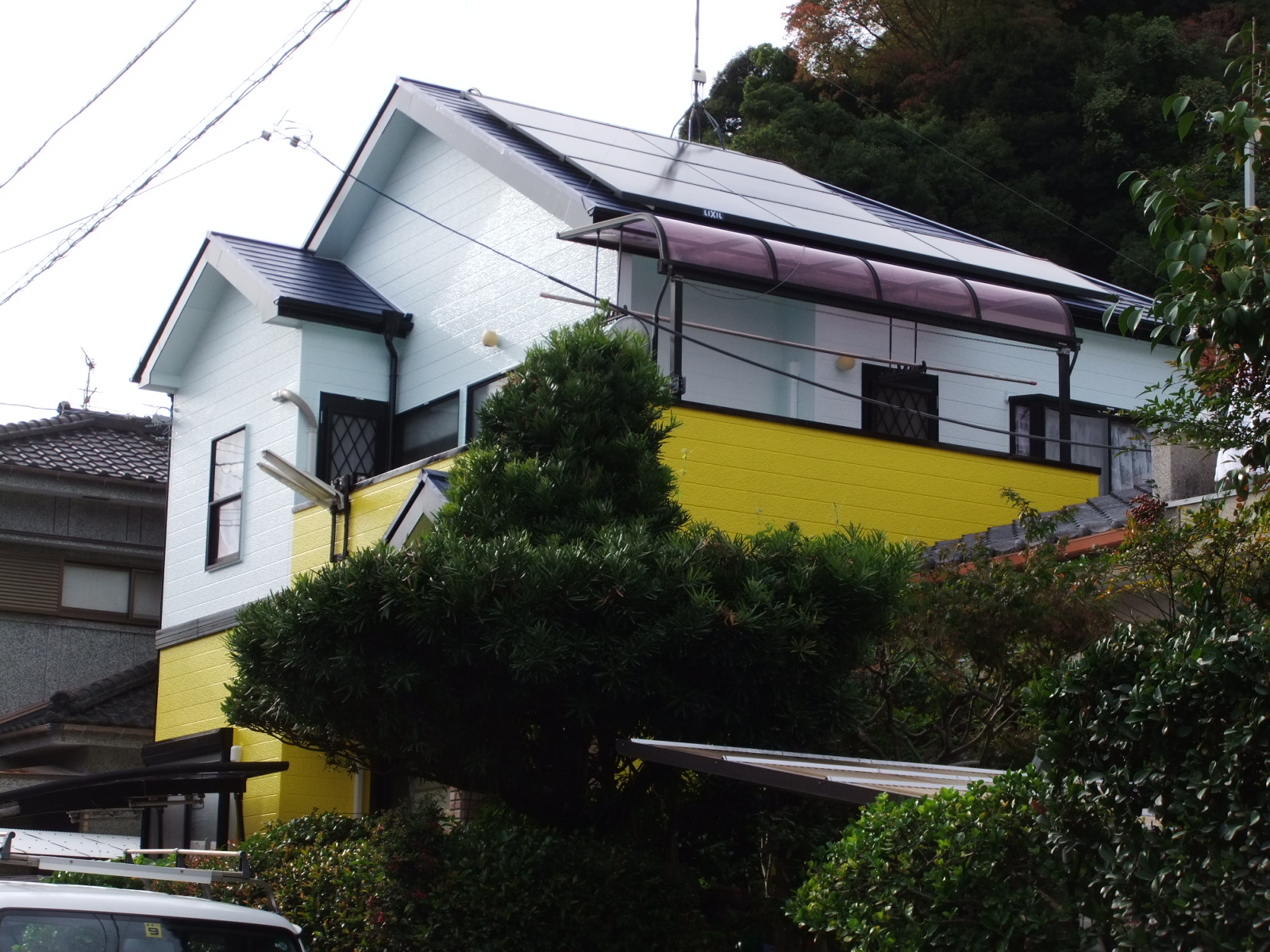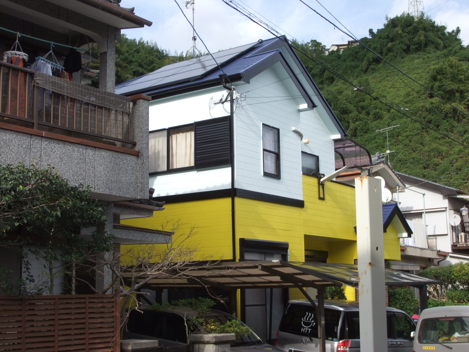 こんにちは。住まいプロ ホームウェル内門工務店の内田 です。今回は、H様邸の外壁・屋根の塗装工事及び太陽光発電設備の工事をおこないました。
