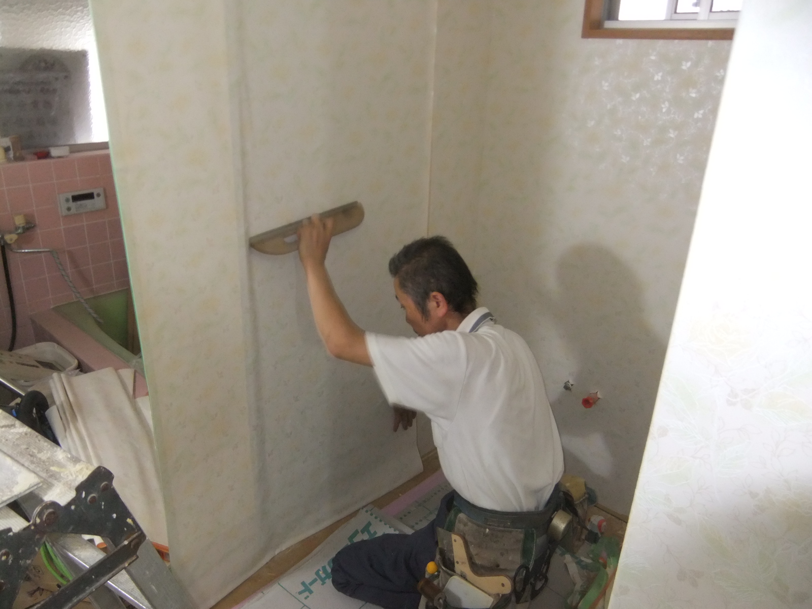 こんにちは。住まいプロ ホームウェル内門工務店の内田 です。今回は、内部の洗面所、トイレの改修工事、和室のクロスの張替工事をおこないました。