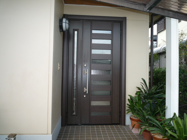 こんにちは。住まいプロ ホームウェル内門工務店の店長の木原 です。今回は、玄関ドアリフォームを行いましたのでご紹介致します。 LIXIL リシェント 断熱仕様 柿渋調