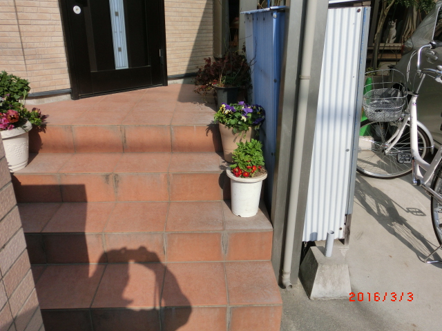 ポーチ部分が階段になっており、高齢化に伴い、介護保険を使い手摺を取付ました。